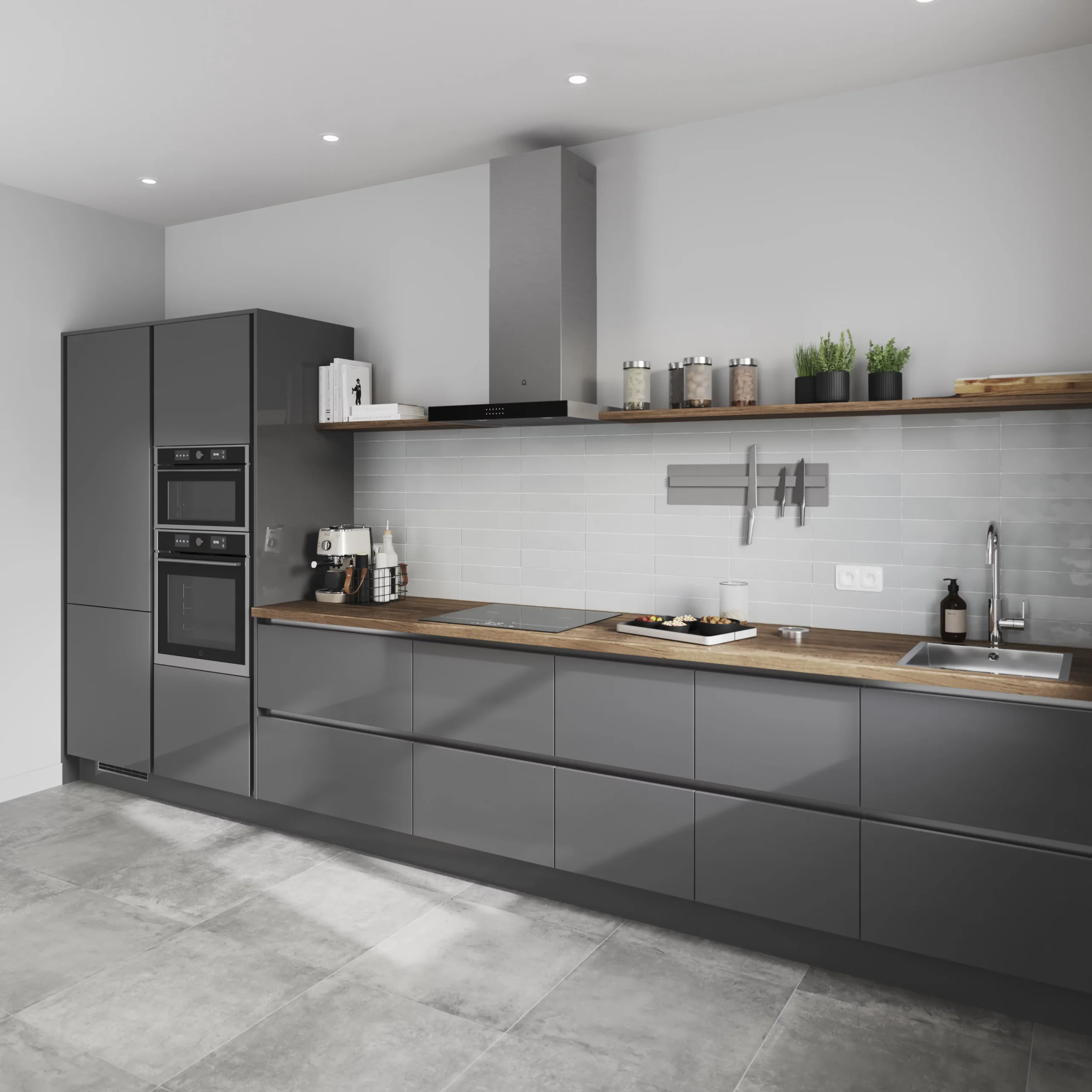 Our Stevia gloss drawer fronts are a perfect addition to any modern kitchen, featuring bold anthracite tones that will bring your kitchen right up to date. With their smooth surface, you can simply wipe clean because there’s nowhere for the dirt to stick. We’ve also designed GoodHome worktops and handles to complement this range to make your kitchen a stylish space.