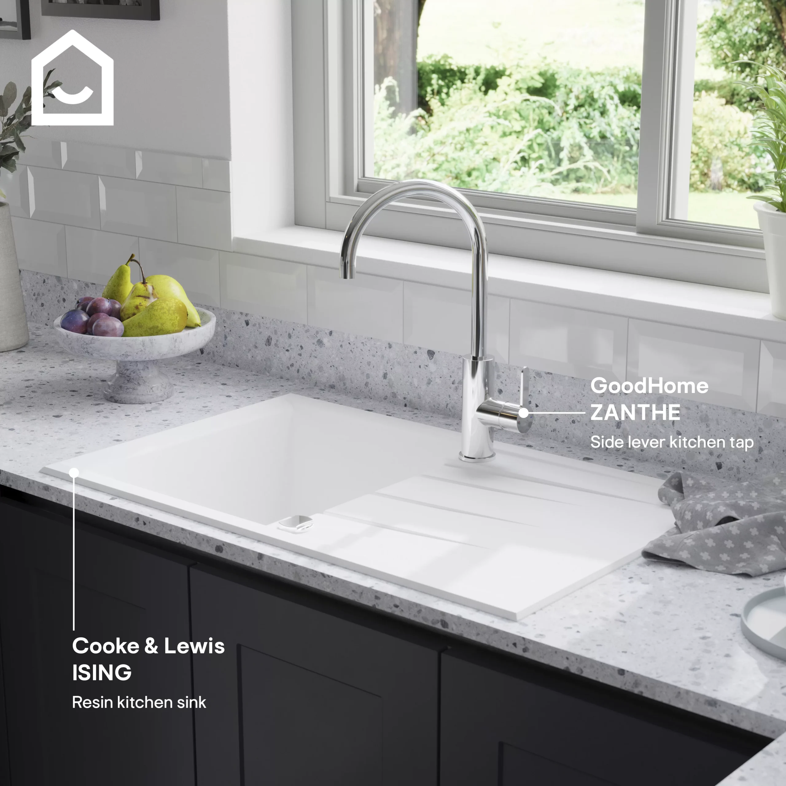 This Zanthe chrome-plated side lever kitchen tap is perfect for the families who are eager for the combination of the great product performance and perfect design in look.