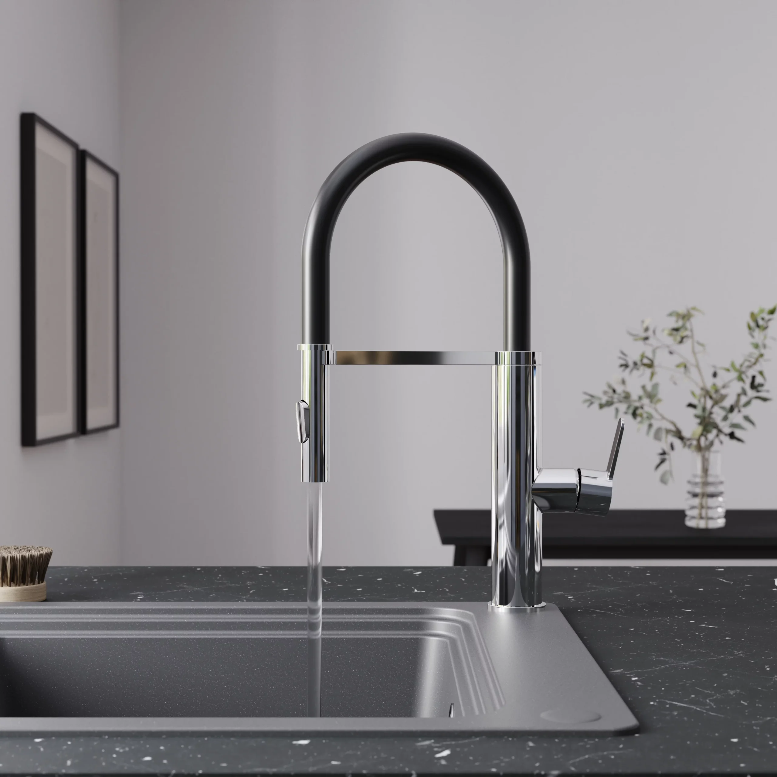 This Zatar black spring neck kitchen tap is perfect for the families who are eager for the combination of the great product performance and perfect design in look.