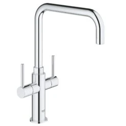 This chrome monobloc tap from Grohe’s Ambi range brings a stylish finishing touch to your kitchen. It’s suitable for high and low pressure systems.
