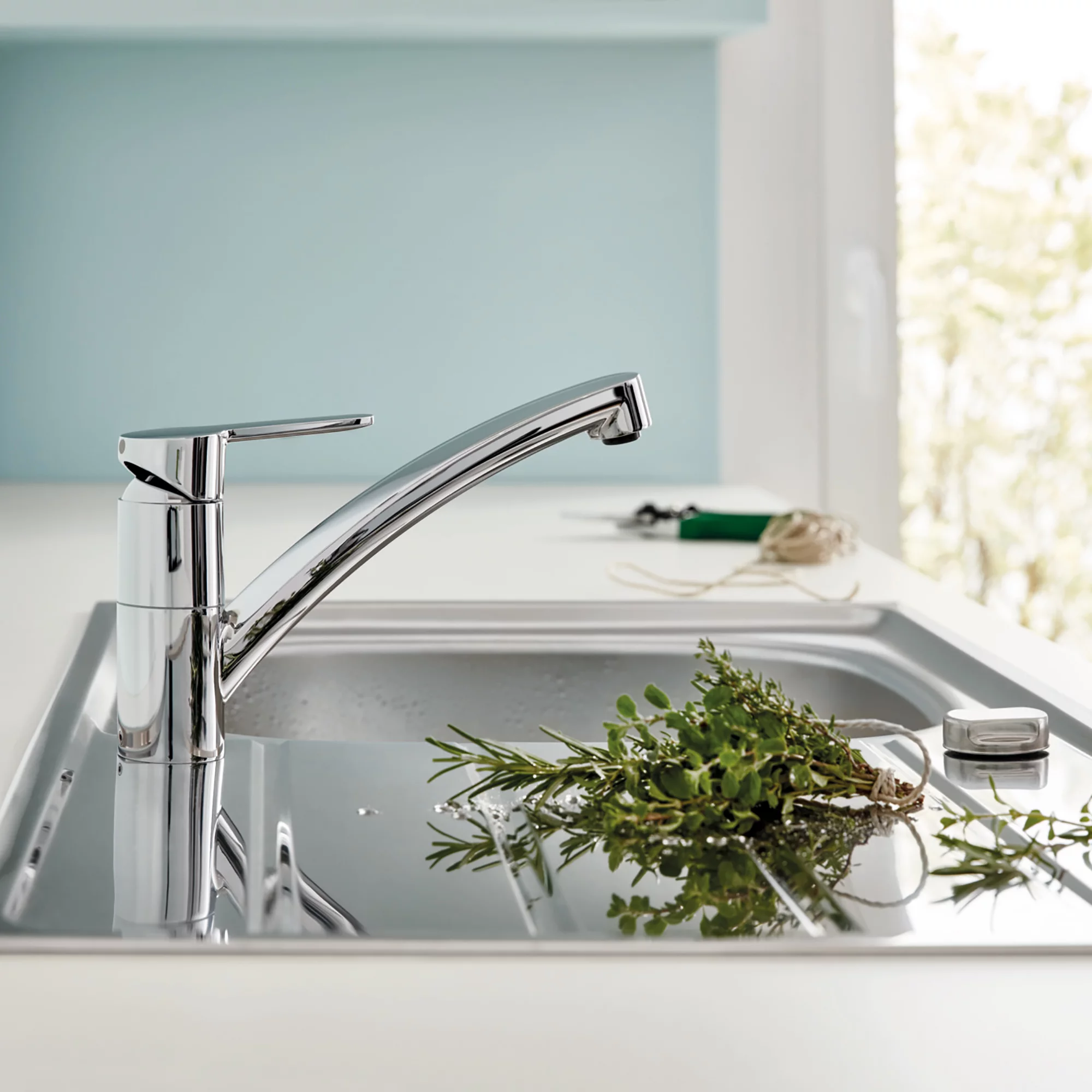This chrome top lever tap from Grohe’s Start Eco range will add a stylish finishing touch to your kitchen. It’s suitable for high pressure systems.