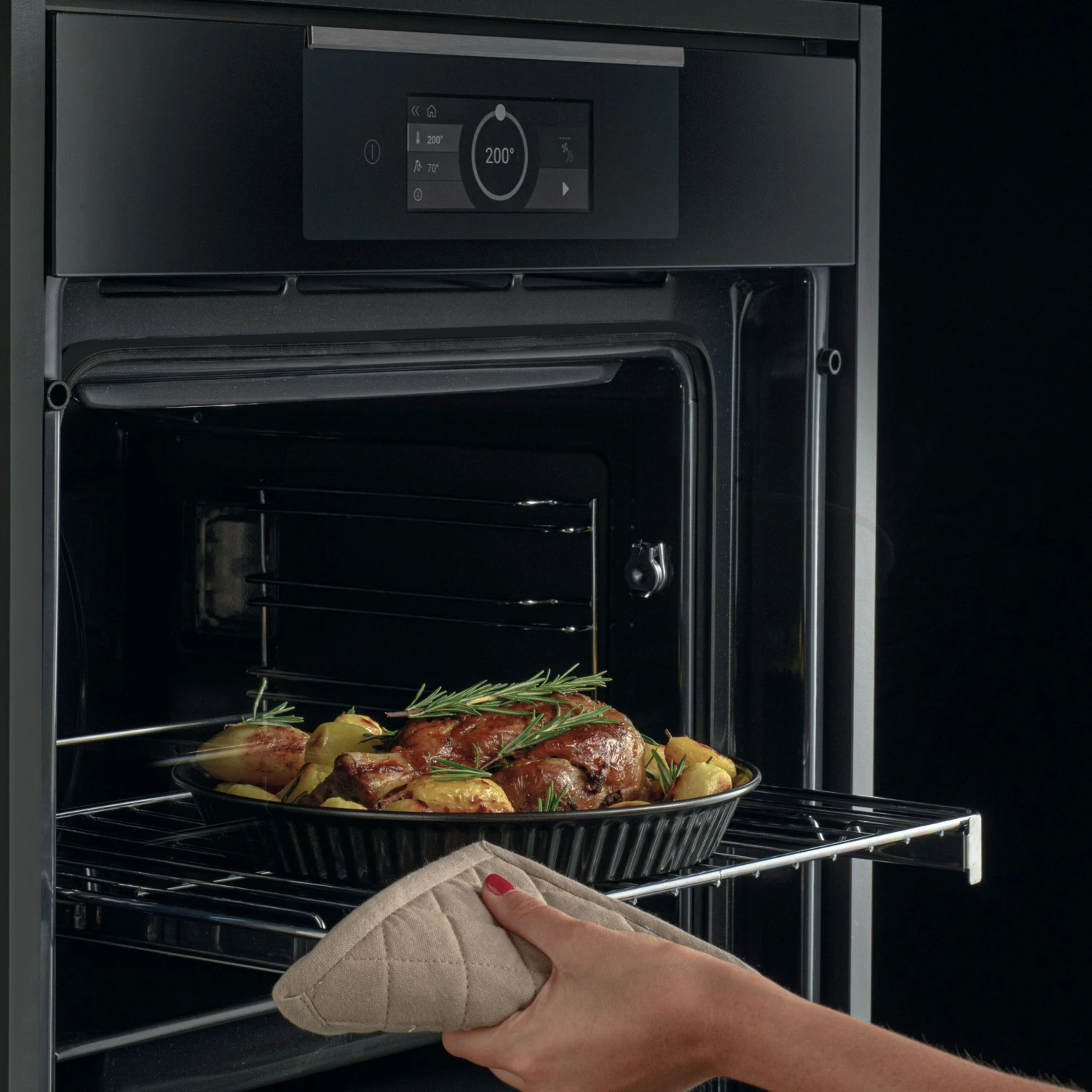 - The perfect distribution of heat, humidity and air in your pyrolytic oven will ensure you a perfect uniformity of cooking to achieve excellent results. Thanks to a chef panel with a special avant-garde shape and a variable fan speed for an optimal air distribution and fast heating inside the cavity. The radial positioning of the fan cooling system, our Ventilaction helps you keep a constant temperature inside, without heat loss or overheating the handle, the surrounding furniture or electronics outside the oven.
