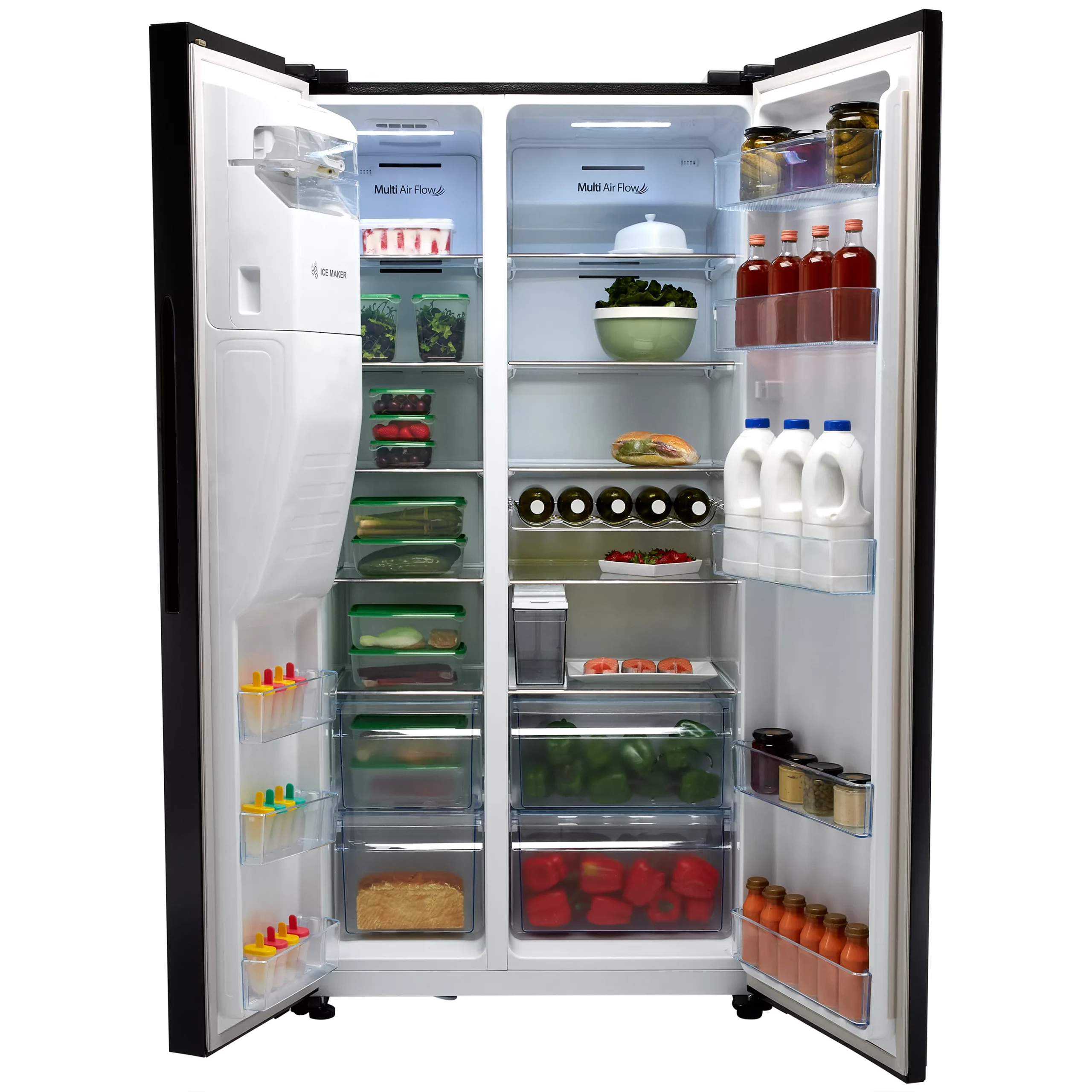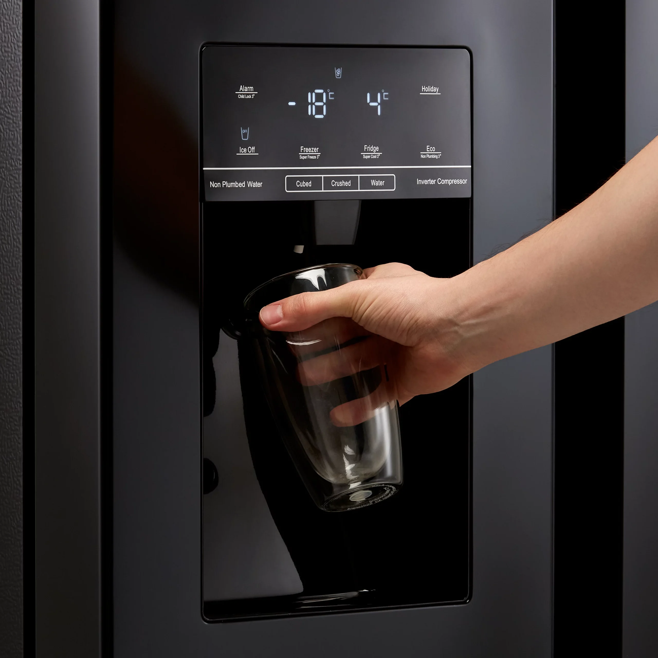 This Hisense RS694N4TBF_BK American fridge freezer is the perfect choice for busy households with plenty of mouths to feed. With lots of room for your favourite groceries, you’ll have all the space you need for everything from bottles of bubbly to frozen sweet treats.