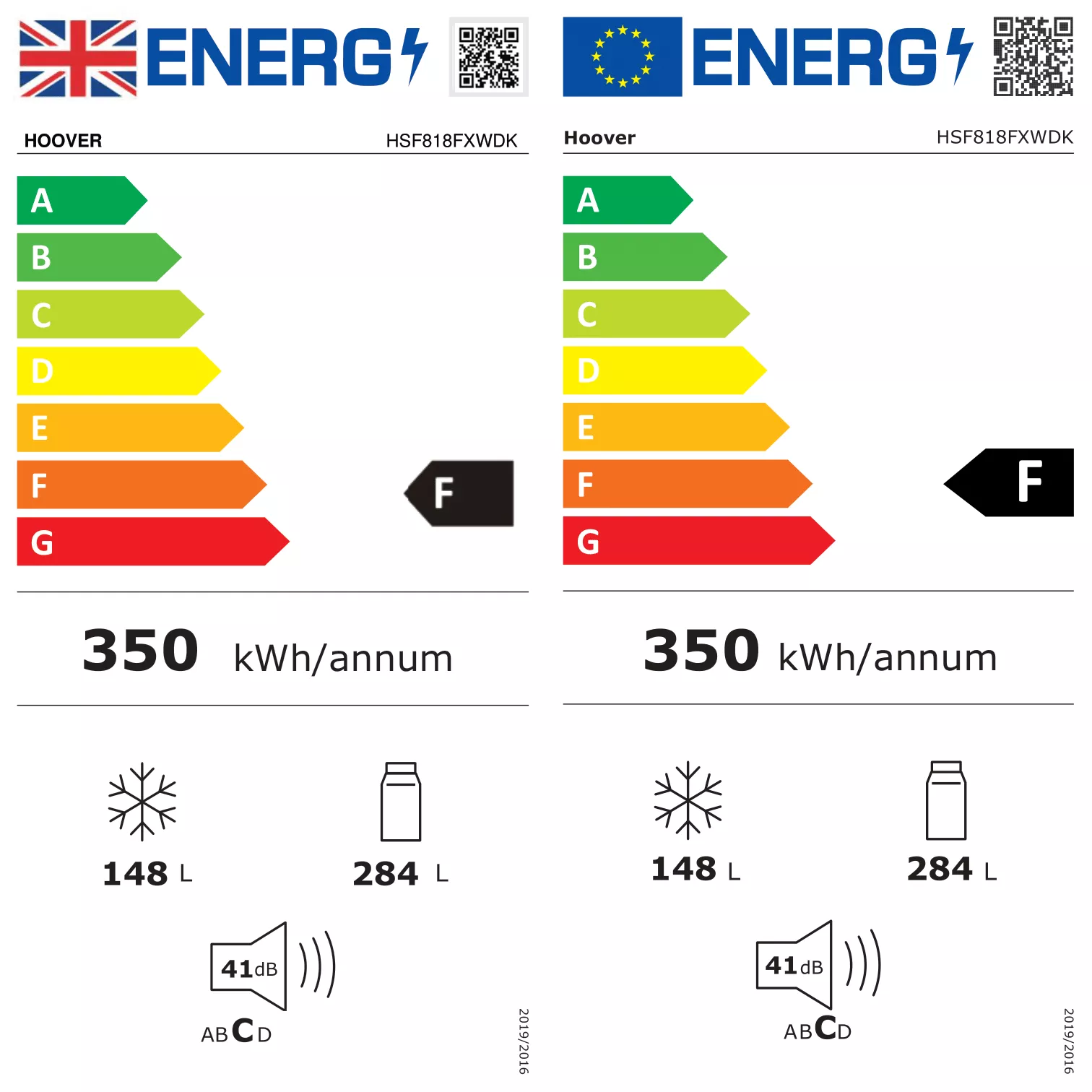 | Annual energy consumption | 350kWh |