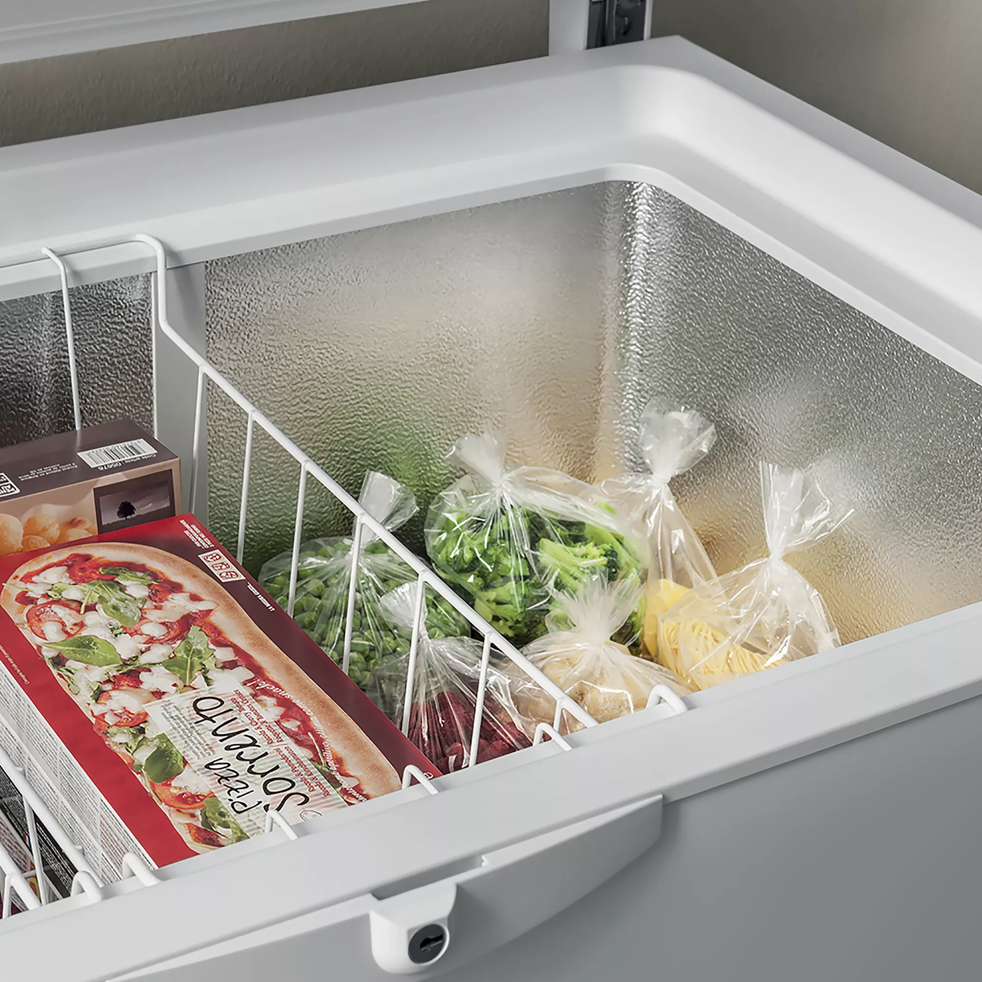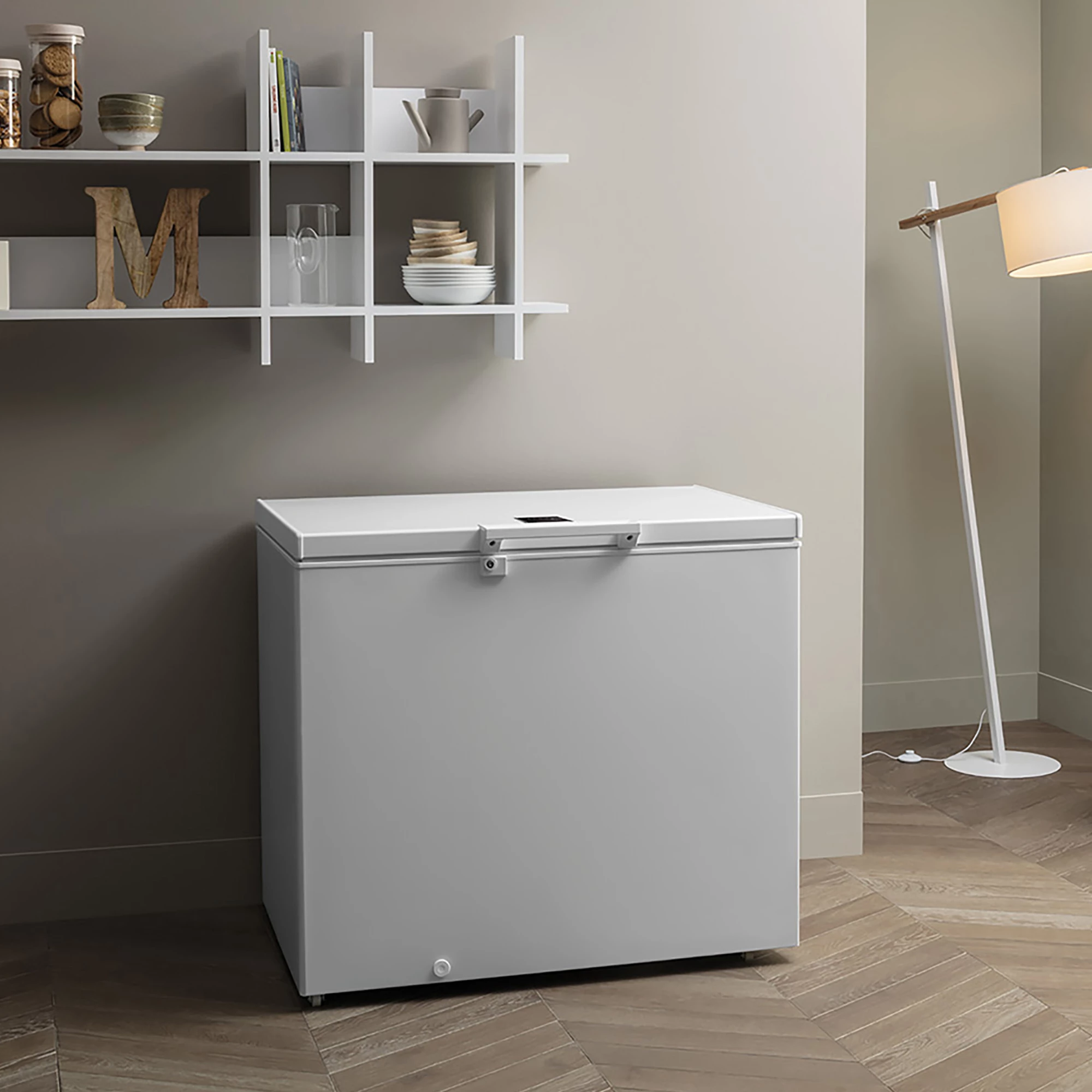 Whether you’re stocking up on frozen veggies or treating yourself to a tub of ice cream, this Hotpoint chest freezer has enough space to store up to 20 bags of shopping. With its handy baskets and LED illumination, you can organise and find exactly what you need to for a delicious meals.