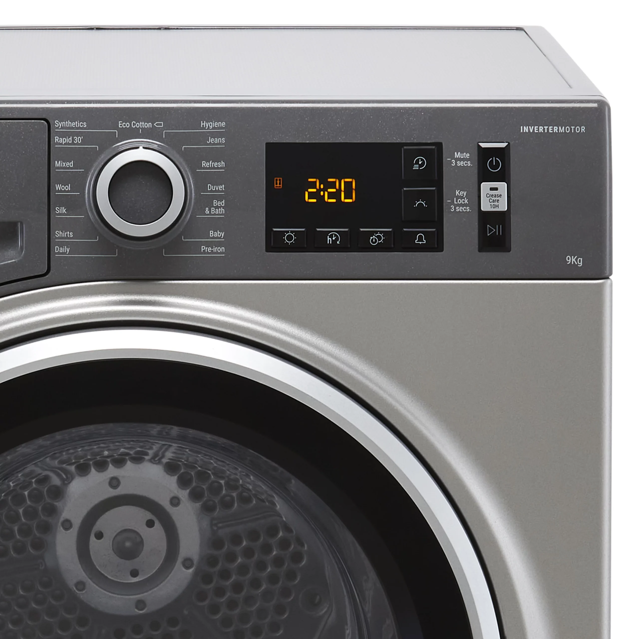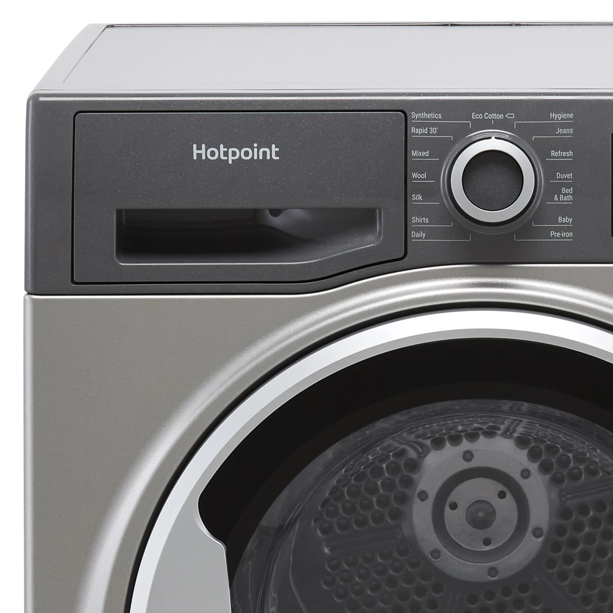 This H3D91GSU Hotpoint condenser tumble dryer is large enough to tackle laundry of up to 4 people in one go, so there shouldn’t be any queues in the kitchen. If anyone has sensitive skin, there’s also an Anti-Allergy programme that removes bacteria, dust mites and pollen, meaning everyone can wear their clothes with confidence.