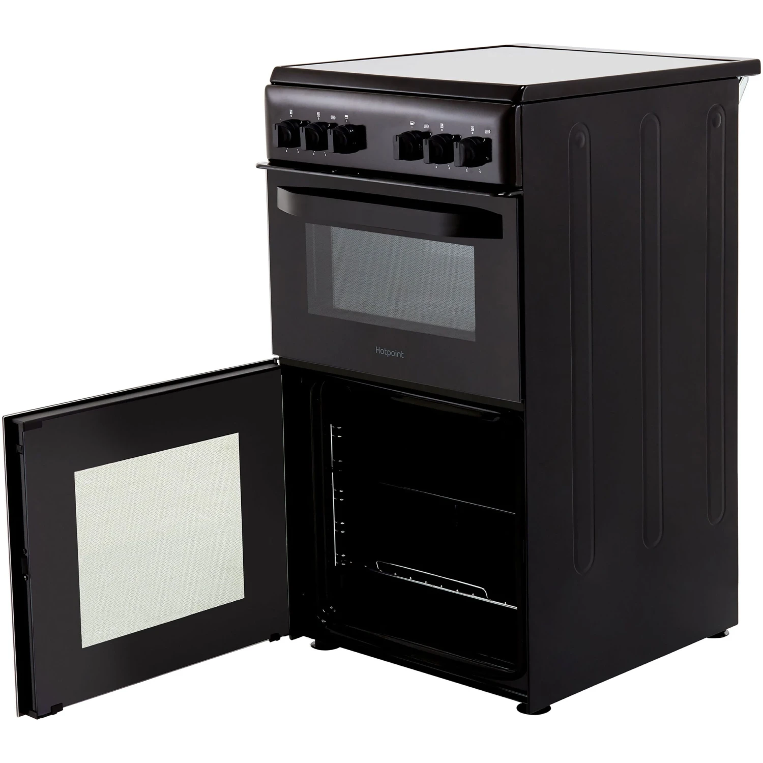 Cook your favourite dishes for the whole family with this sleek black Hotpoint HD5V92KCB_BK electric cooker. We’ve all forgotten to take meat out of the freezer occasionally, with the special defrost feature on this cooker will thaw it out with ease. Now when you’re frying away on the 4-zone ceramic hob, the residual heat indicator will tell you when a zone is still hot and turn off when it’s cooled down too.