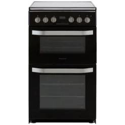 Enjoy creating tasty meals on this Hotpoint HD5V93CCB/UK_BK double electric cooker. With two electric ovens, and a handy grill setting on the second oven for a delicious golden lasagne, you’ll be tucking into your dinner in no time. Use the ceramic hob to quickly boil up your veggies, with 4-zones so you can boil your peas while you fry up a steak.