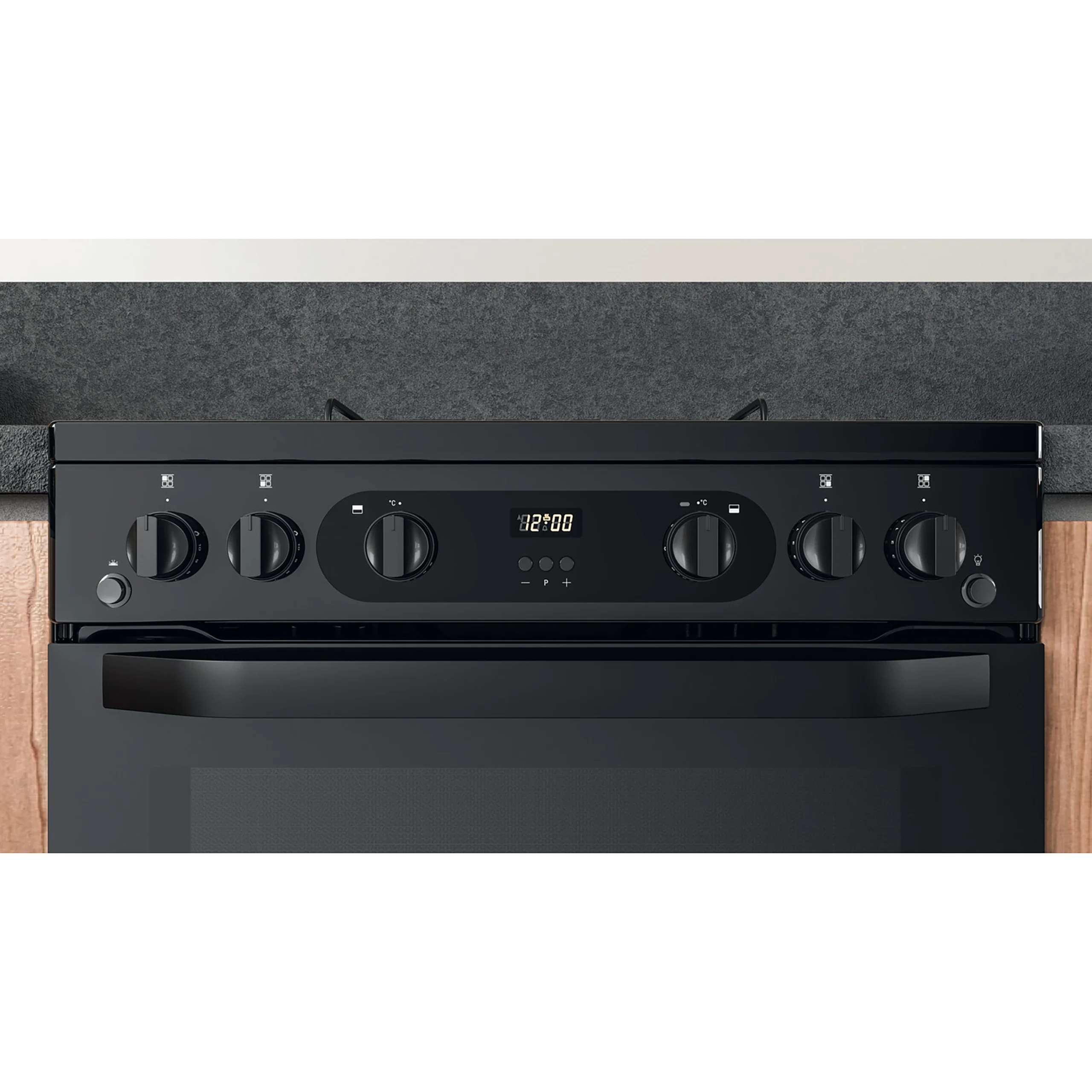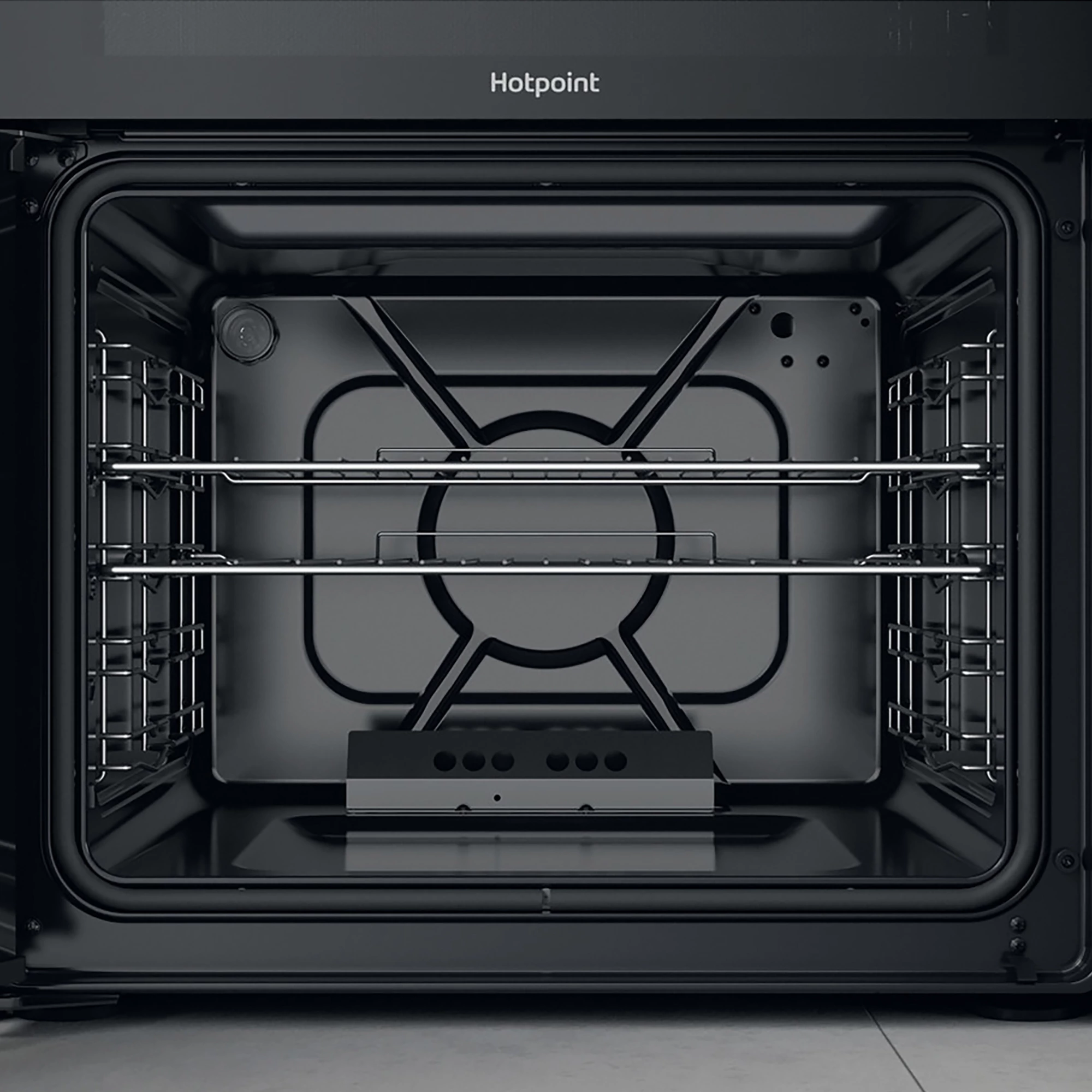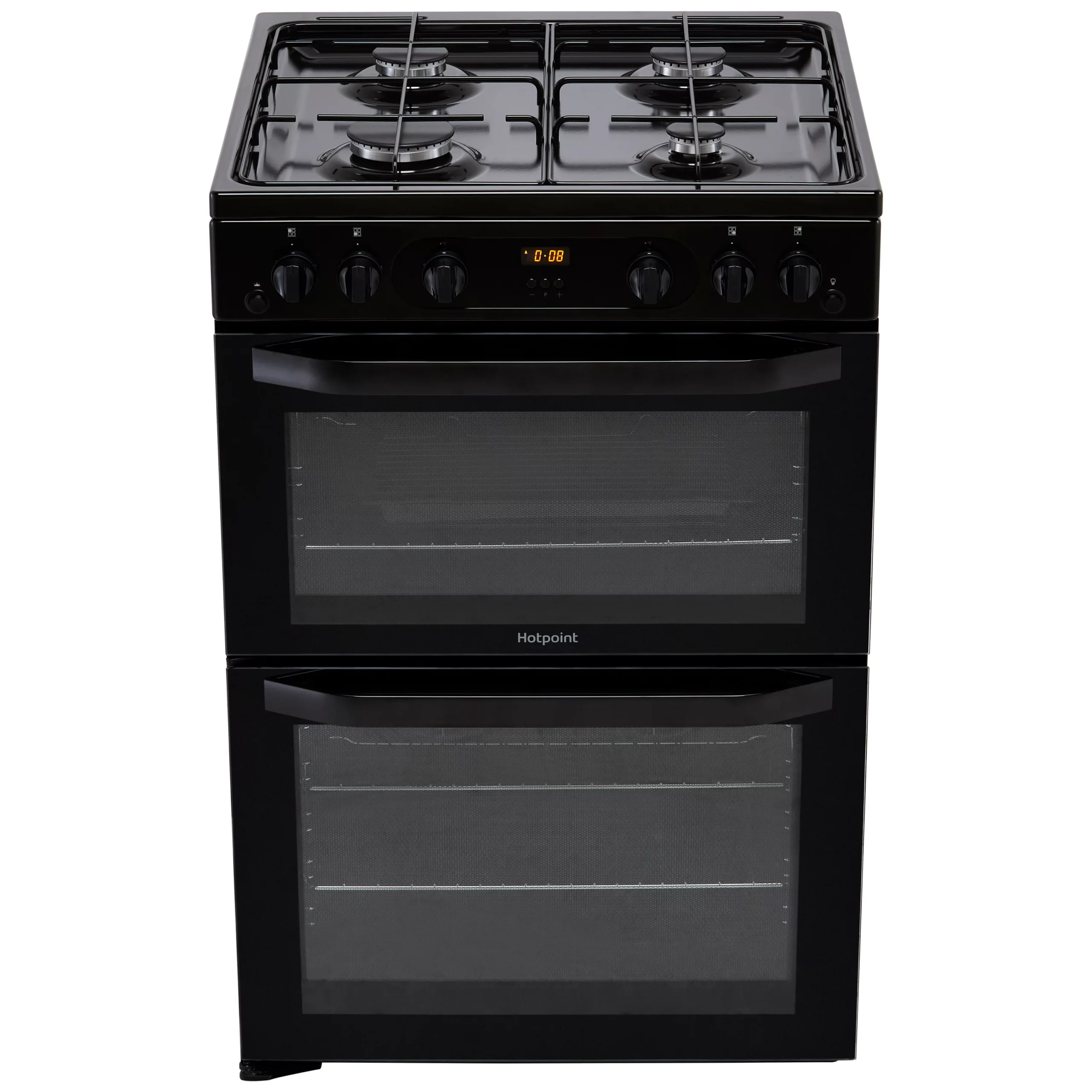 This black Hotpoint HDM67G0CCW/UK_WH gas cooker with a gas hob has what you need for a delicious meal that everyone will enjoy. There are two ovens with plenty of space to cook a dinner and dessert at the same time, and a grill function which is perfect for making a quick snack.