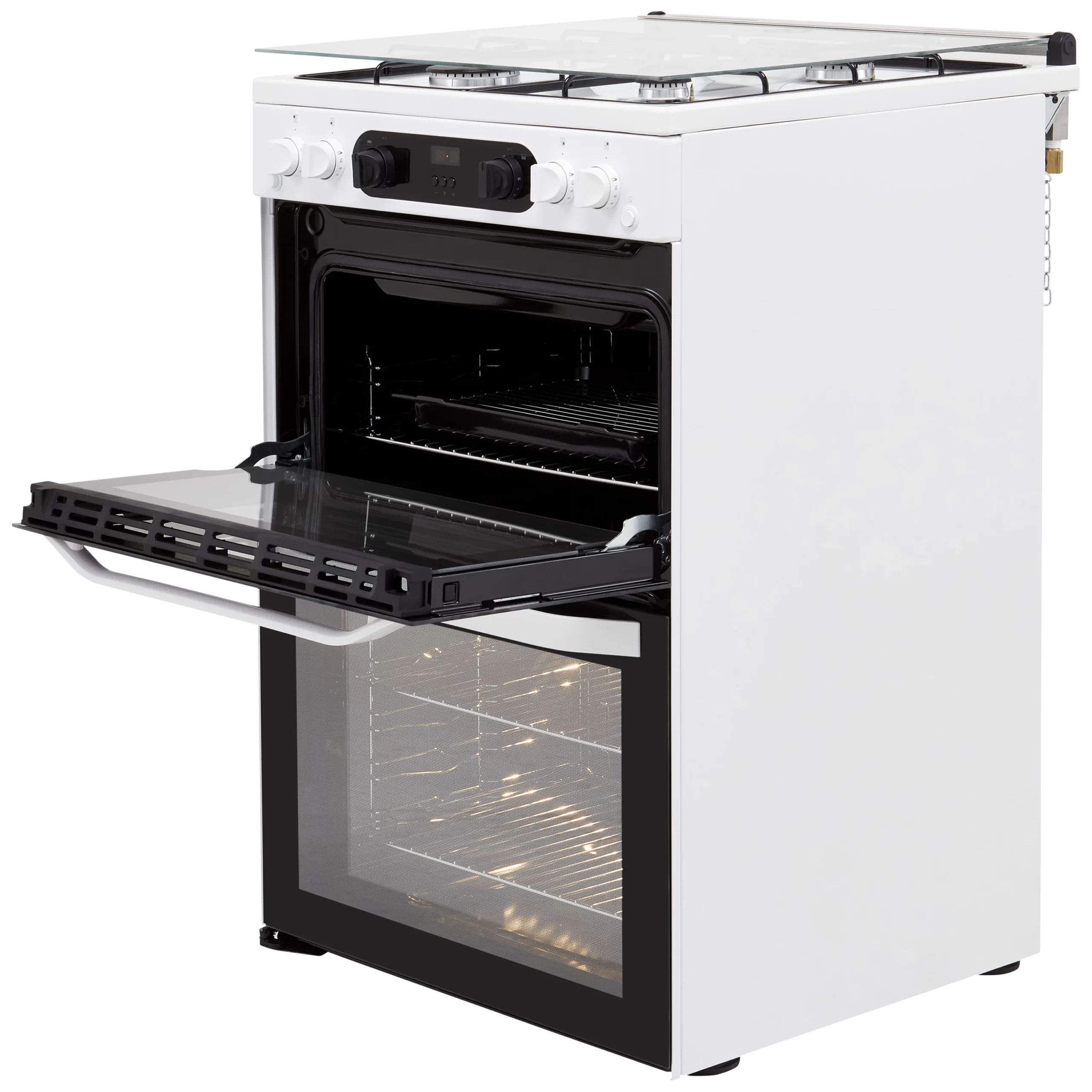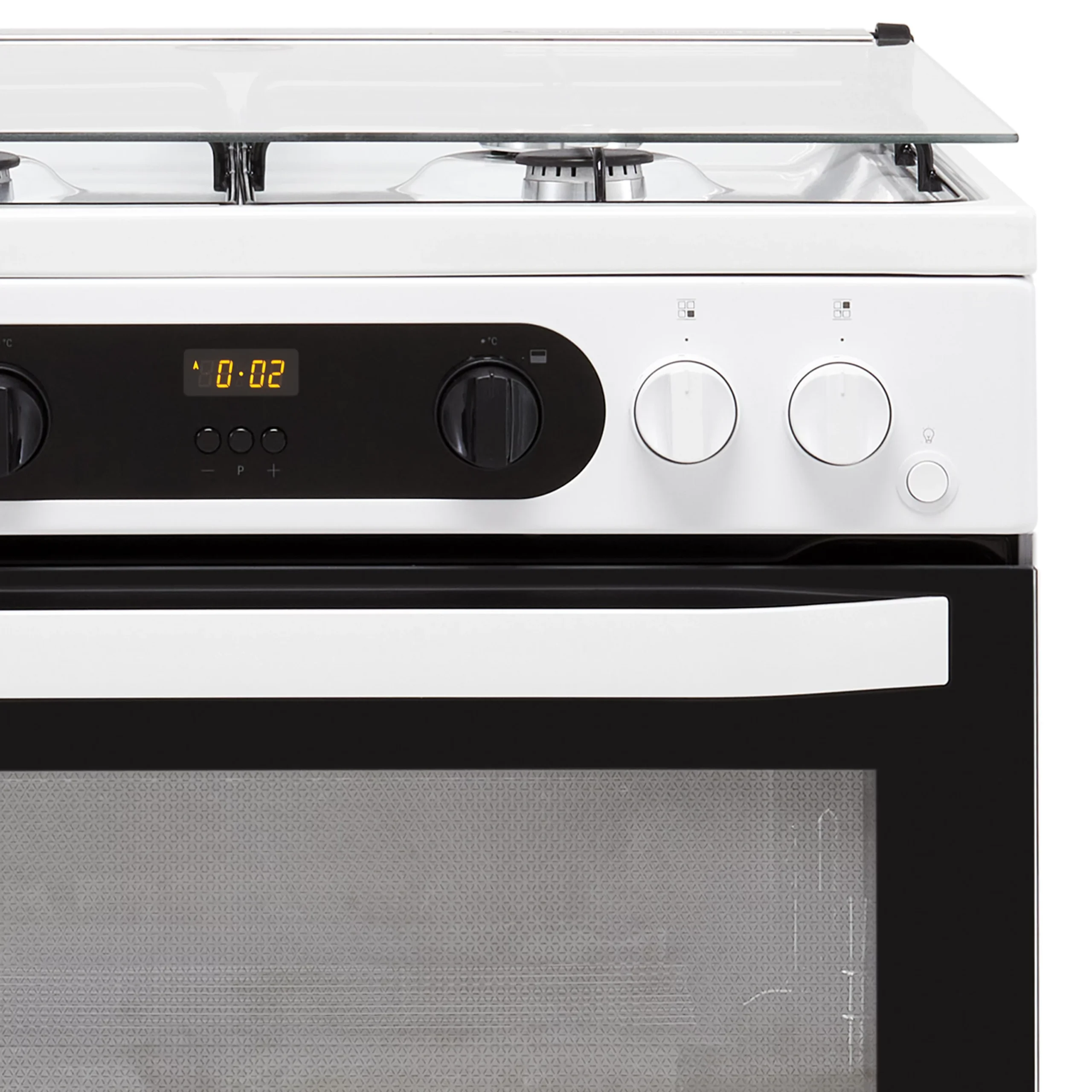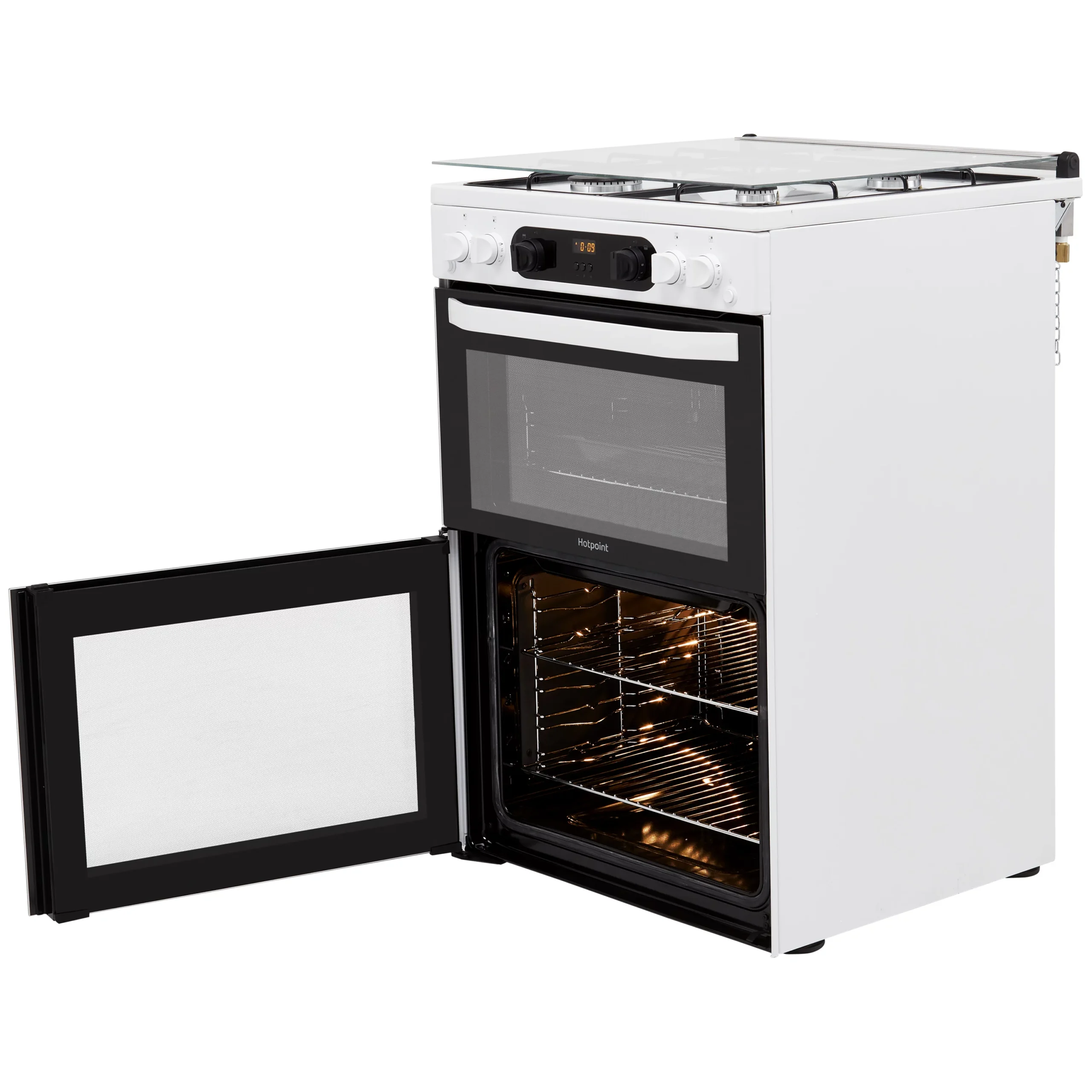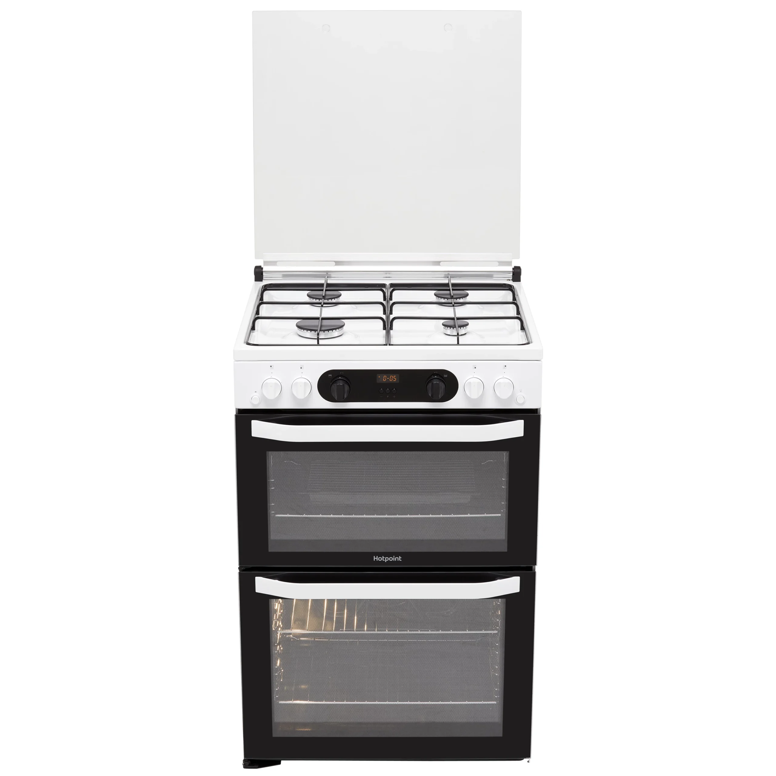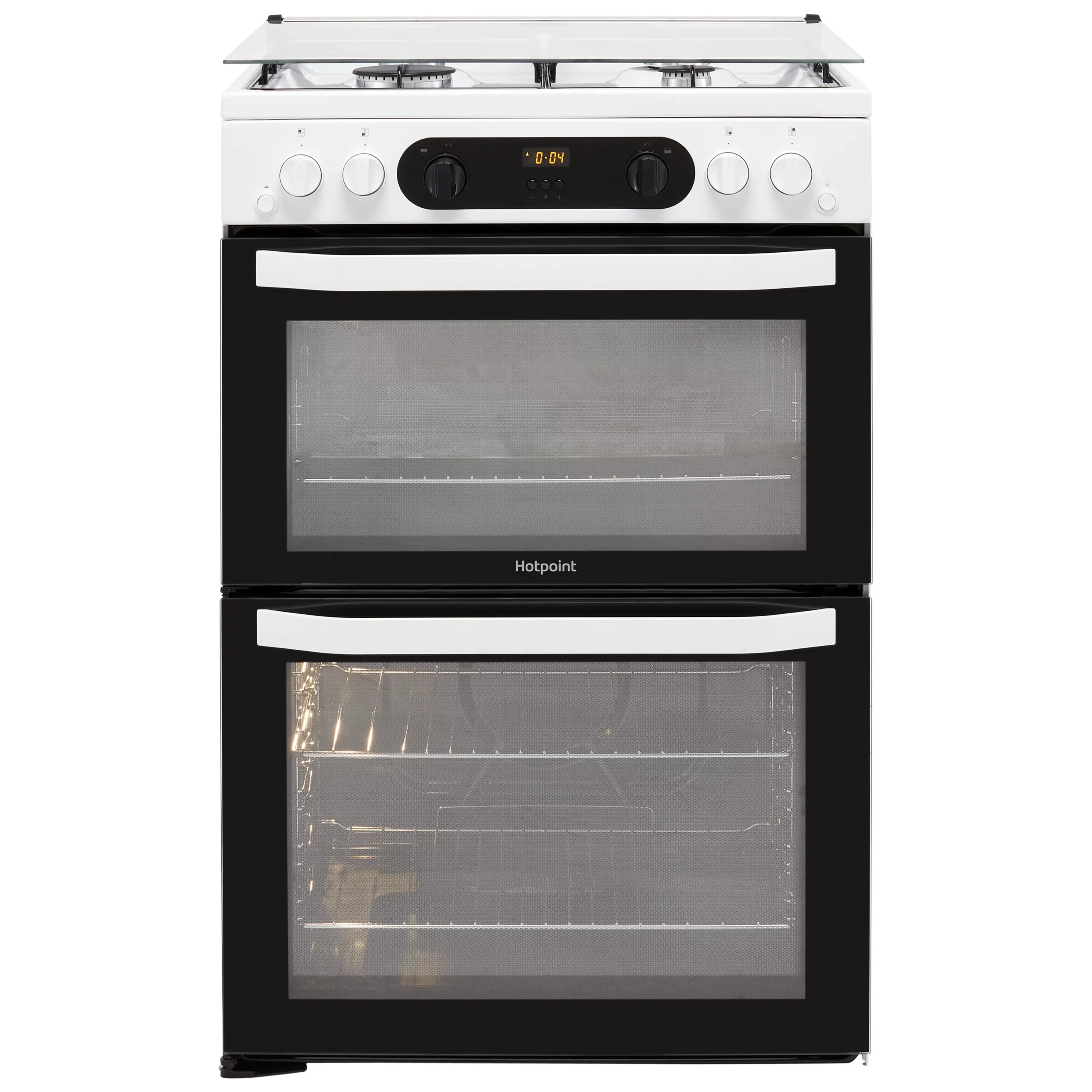This white Hotpoint HDM67G0CCW/UK_WH gas cooker has what you need for a delicious meal that everyone will enjoy. There are two ovens with plenty of space to cook a dinner and dessert at the same time, and a grill function which is perfect for making a quick snack. The gas hob will quickly warm up a hearty soup and give you the perfect temperature with it’s 10-level flame control.