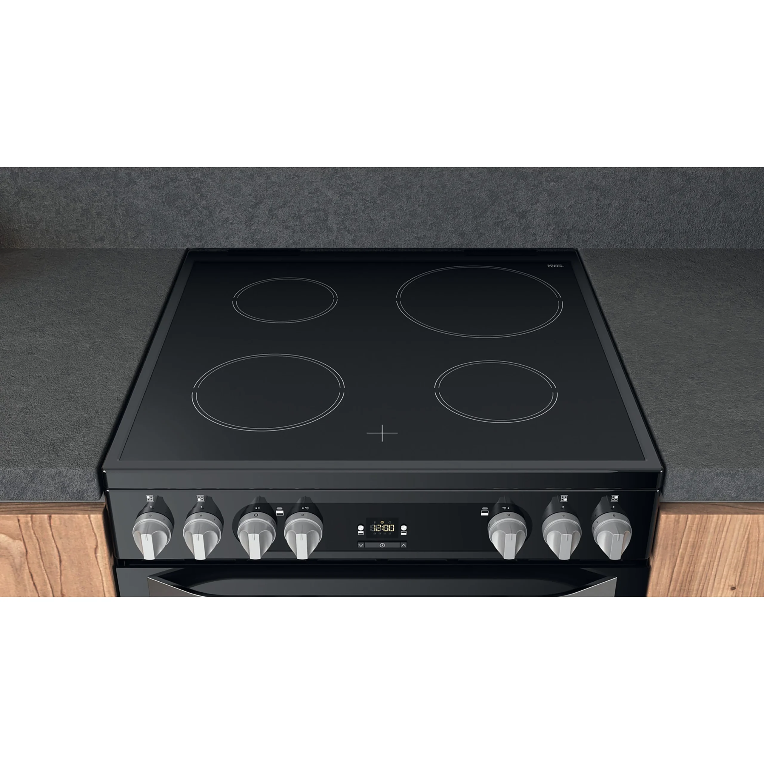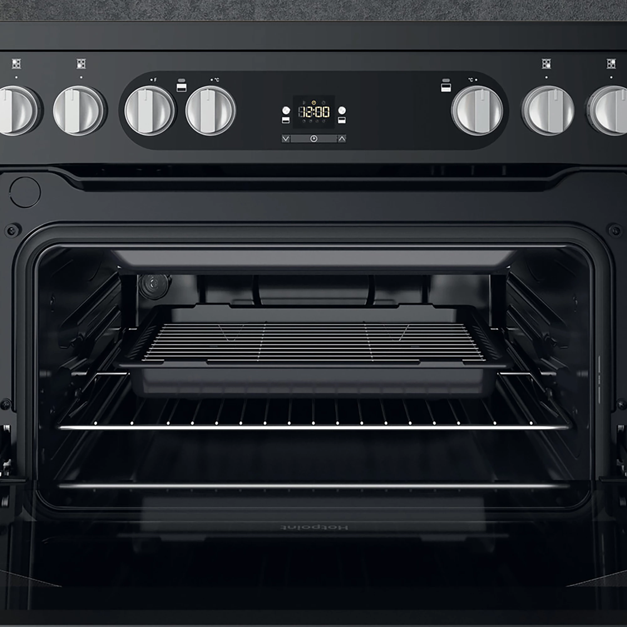 With enough room to cook for the whole family thanks to the double oven space, this HDM67V9HCB/U_BK electric cooker from Hotpoint is the perfect addition to any busy household. The ceramic hob will make light work of boiling your vegetables and the catalytic liners make it easier to clean up and spills or splatters.
