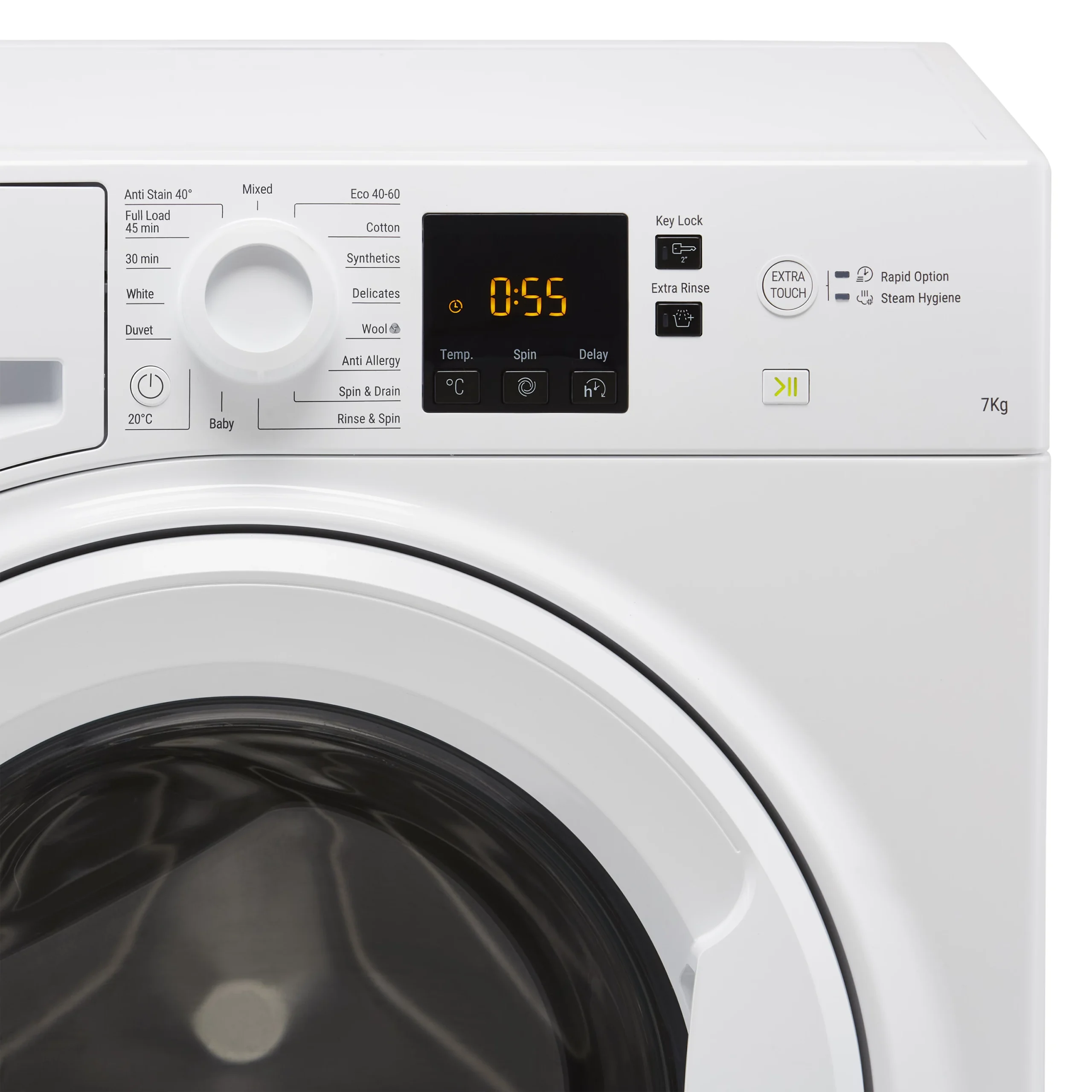 This Hotpoint NSWM743UWUKN washing machine is great for medium-sized households. Whether you’re cleaning school uniforms, work clothes or your favourite Saturday night outfit, they’ll always do a great job.