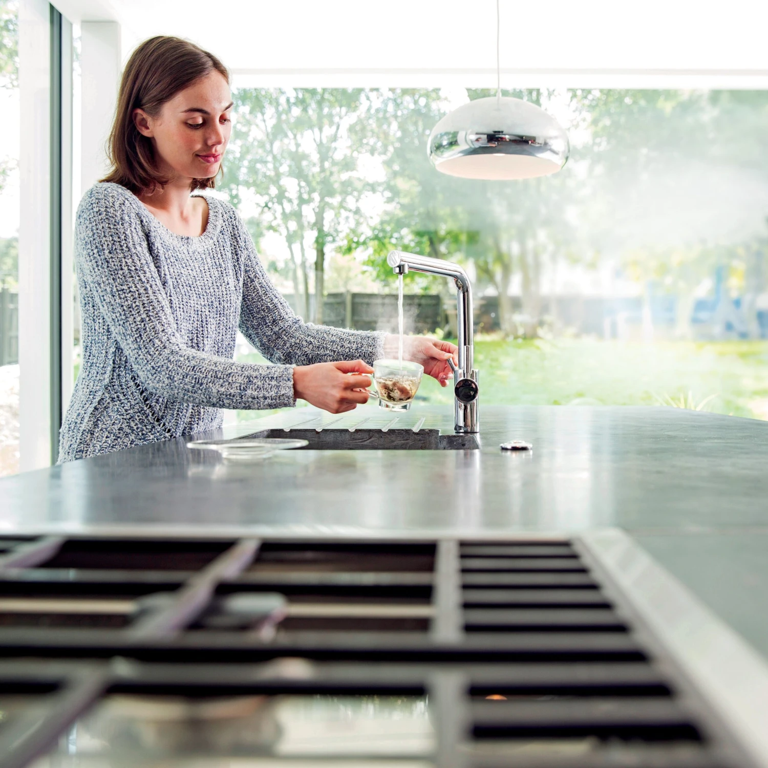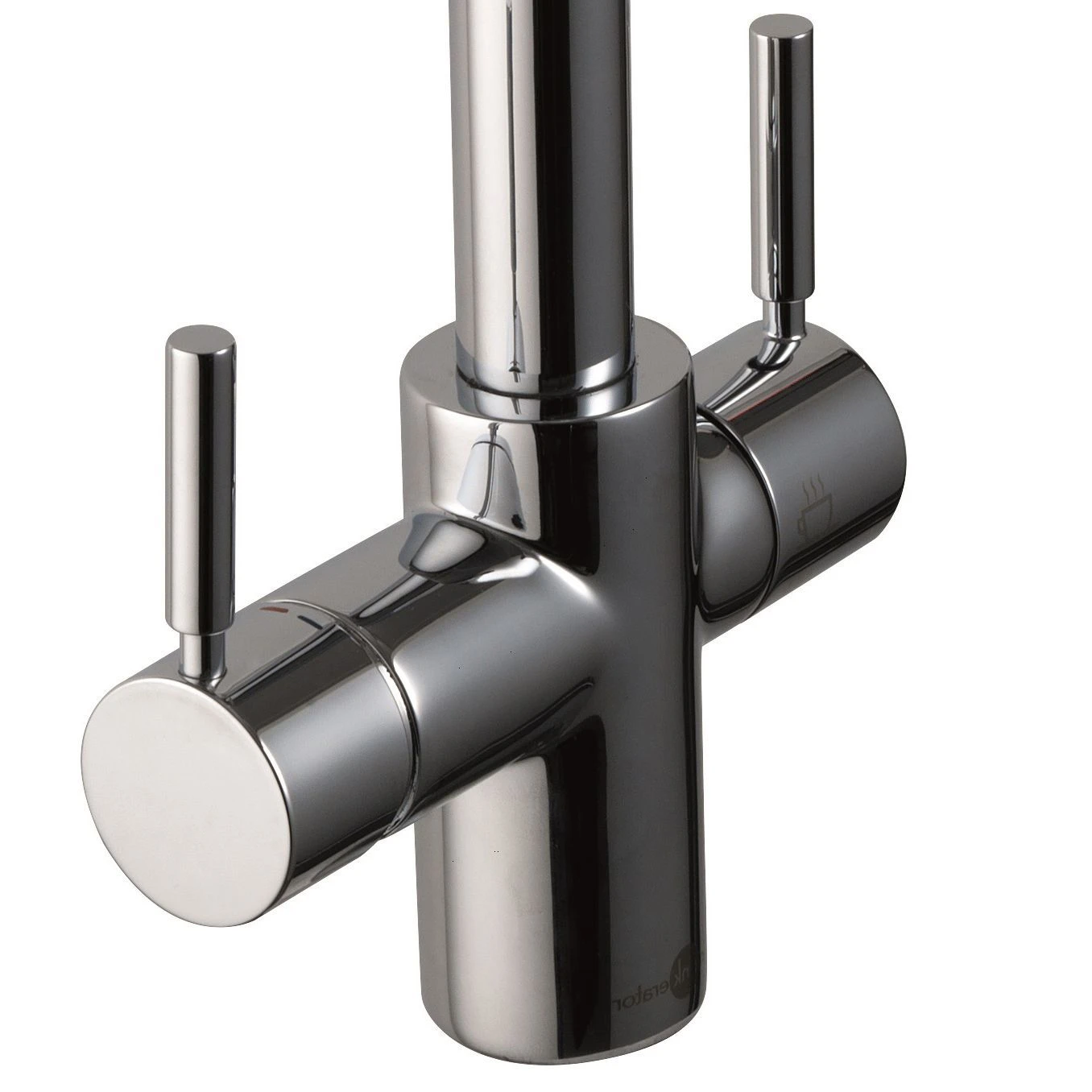This chrome effect filtered steaming hot and normal hot and cold water tap from InSinkErator’s 3N1 range brings a modern finishing touch to your kitchen. It’s controlled by 2 levers and is suitable for standard pressure systems.