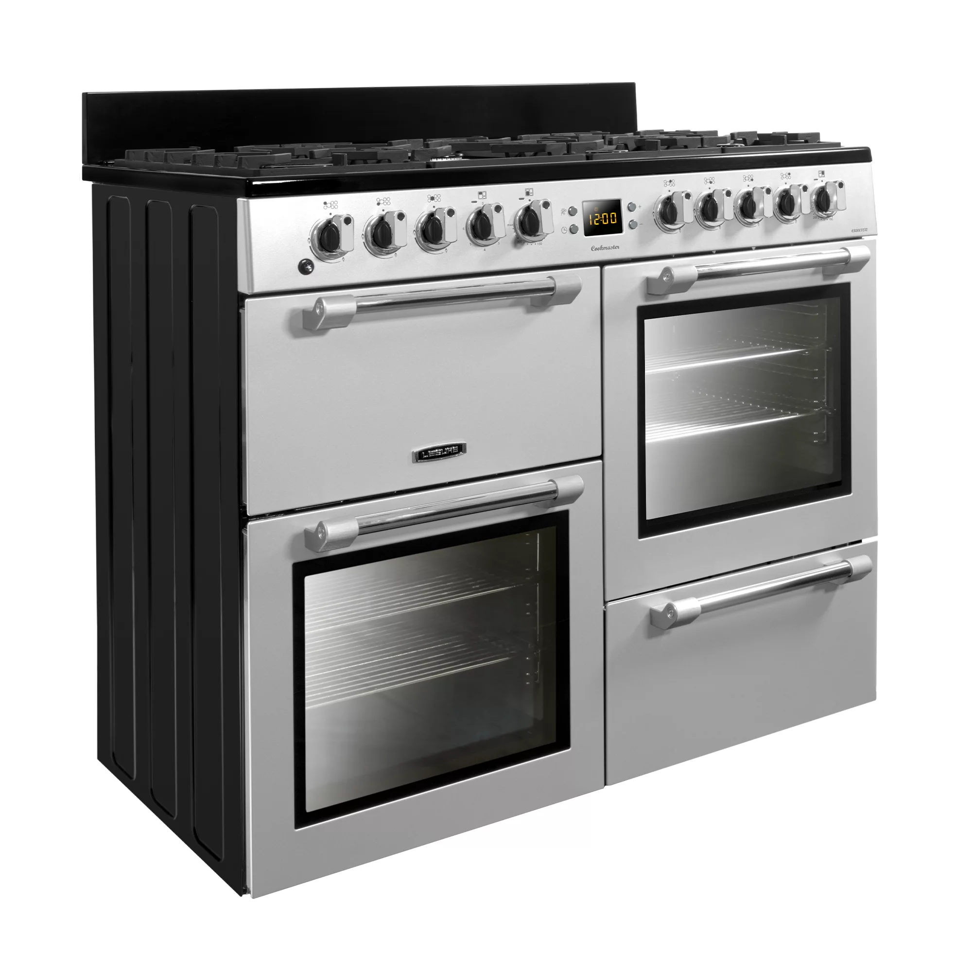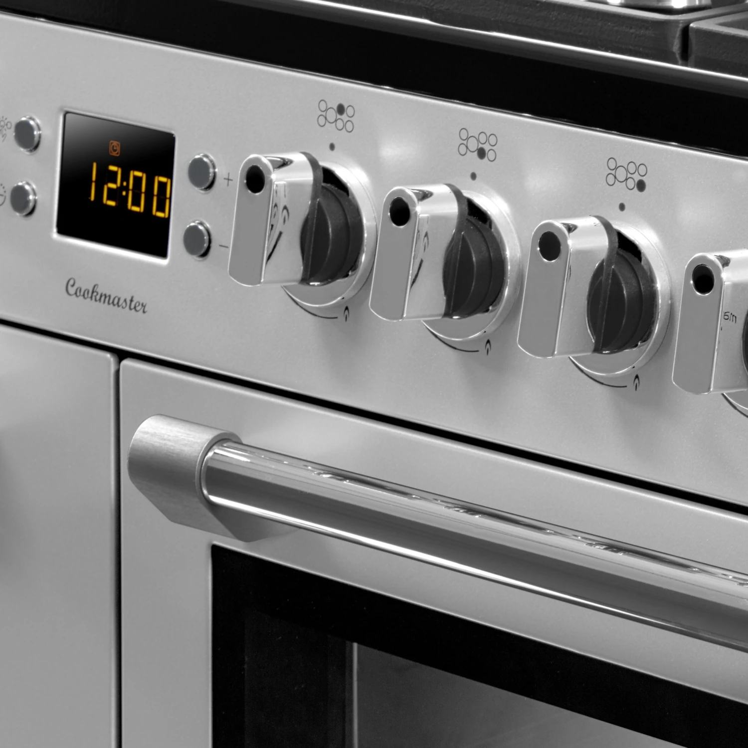 This 100cm Cookmaster dual fuel range cooker combines a range of great features with stylish design that will make a stunning style statement in any kitchen. With tonnes of oven space and 7 hob burners it is ideal for large families, keen bakers and those that love to entertain as it makes juggling a number of dishes a breeze. The easy grip knobs, internal lights and timer display gives you complete control and flexibility, this really is the perfect addition to any modern kitchen.