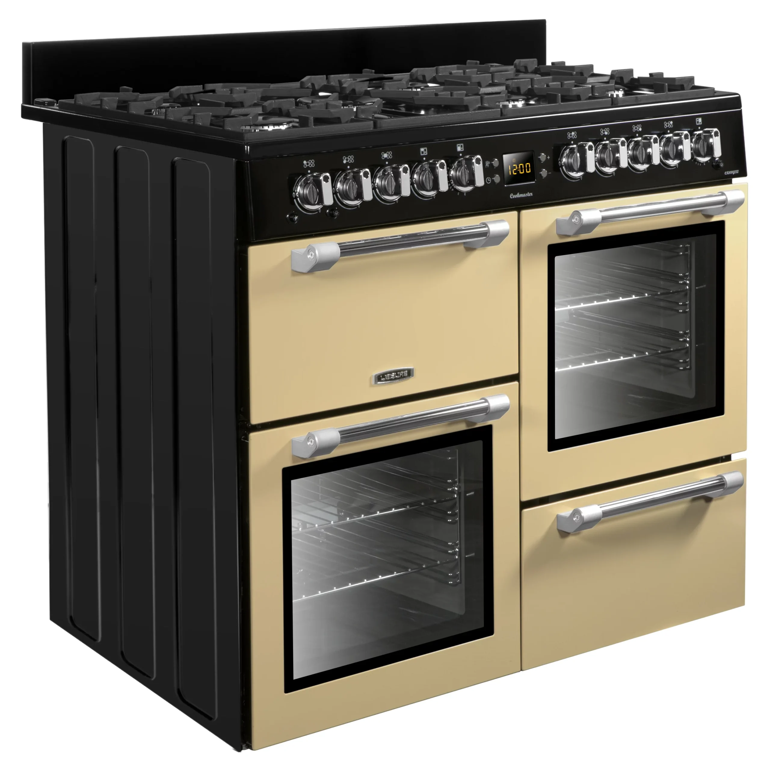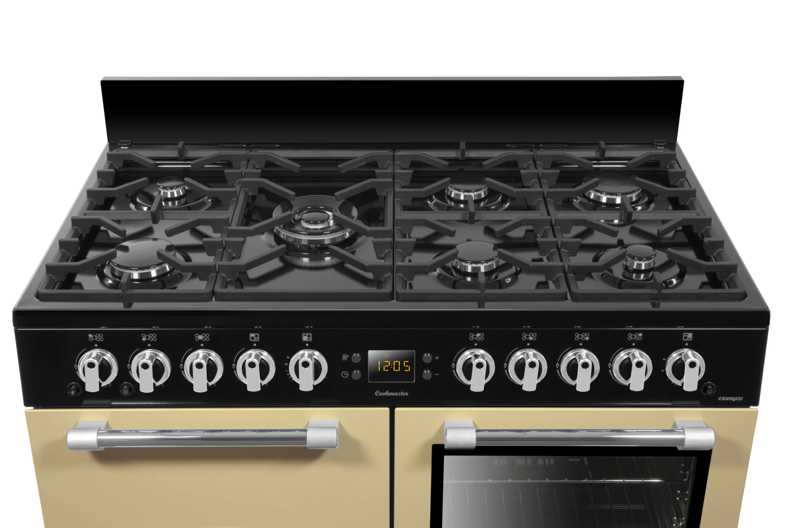 This 100cm Cookmaster range cooker combines a range of great features with stylish design that will make a stunning style statement in any kitchen. With tonnes of oven space and 7 hob burners it is ideal for large families, keen bakers and those that love to entertain as it makes juggling a number of dishes a breeze. The easy grip knobs, internal lights and timer display gives you complete control and flexibility, this really is the perfect addition to any modern kitchen.