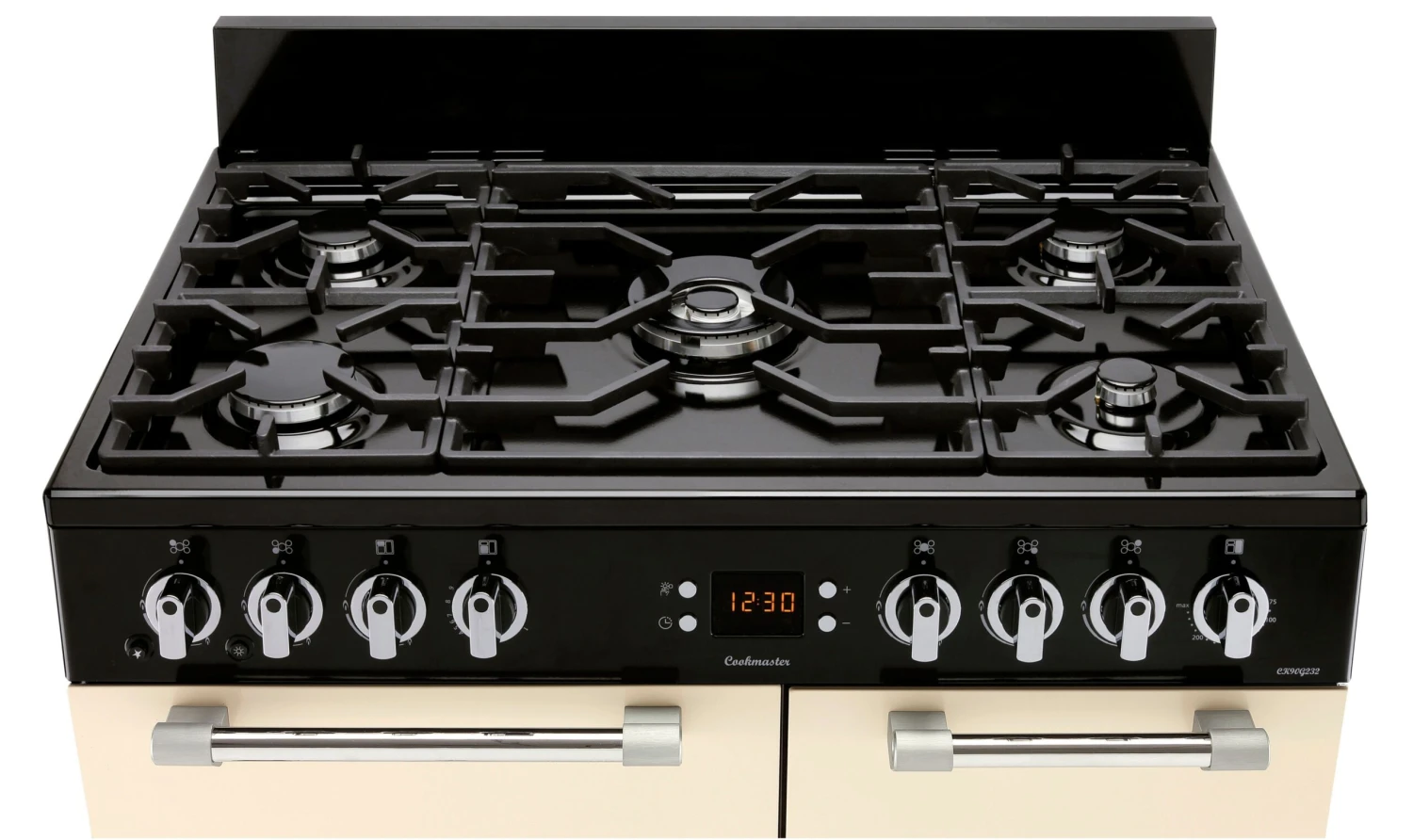 This 90cm Cookmaster gas range cooker combines a range of great features with stylish design that will make a stunning style statement in any kitchen. With tonnes of oven space and 5 hob burners it is ideal for large families, keen bakers and those that love to entertain as it makes juggling a number of dishes a breeze. The easy grip knobs, internal lights and timer display gives you complete control and flexibility, this really is the perfect addition to any modern kitchen.