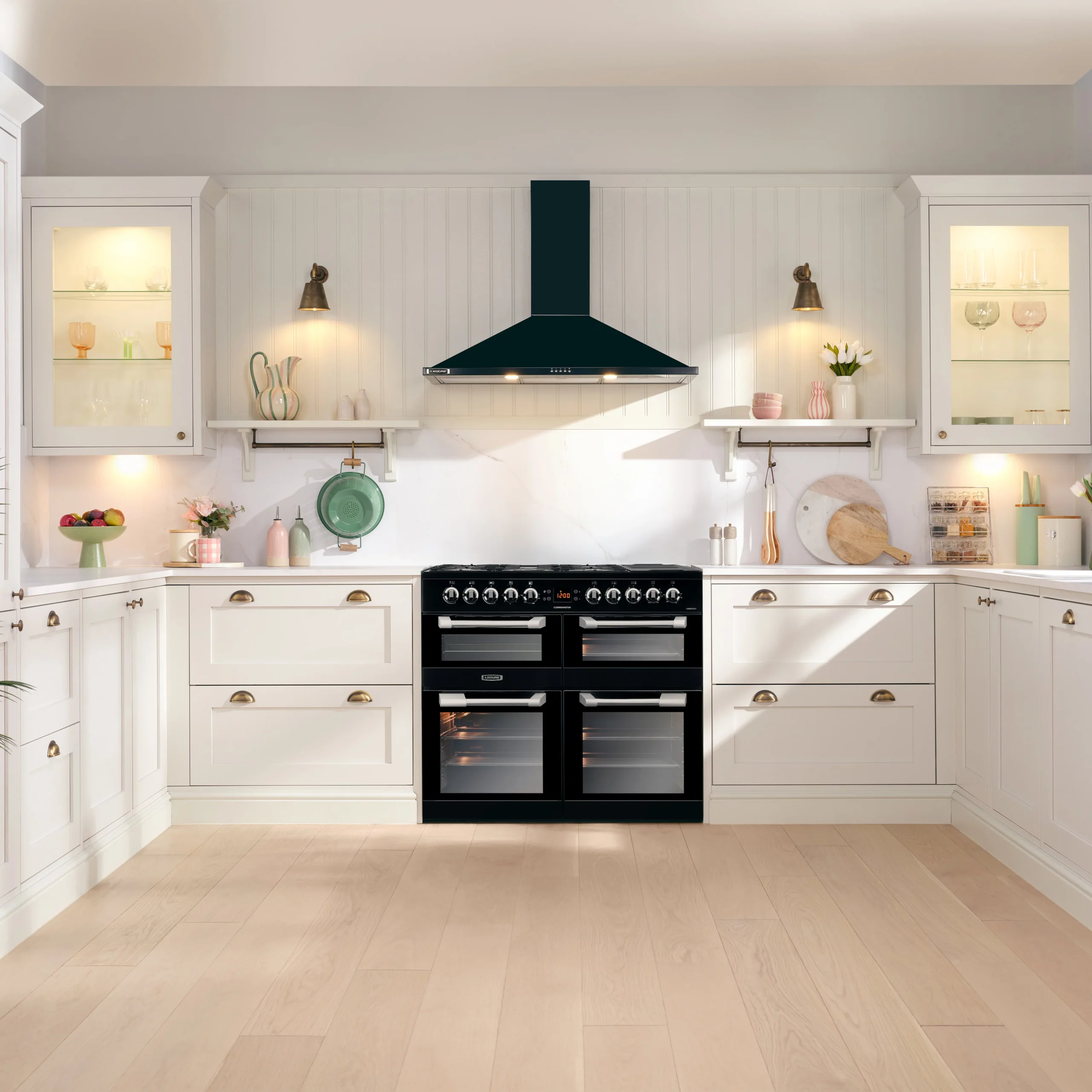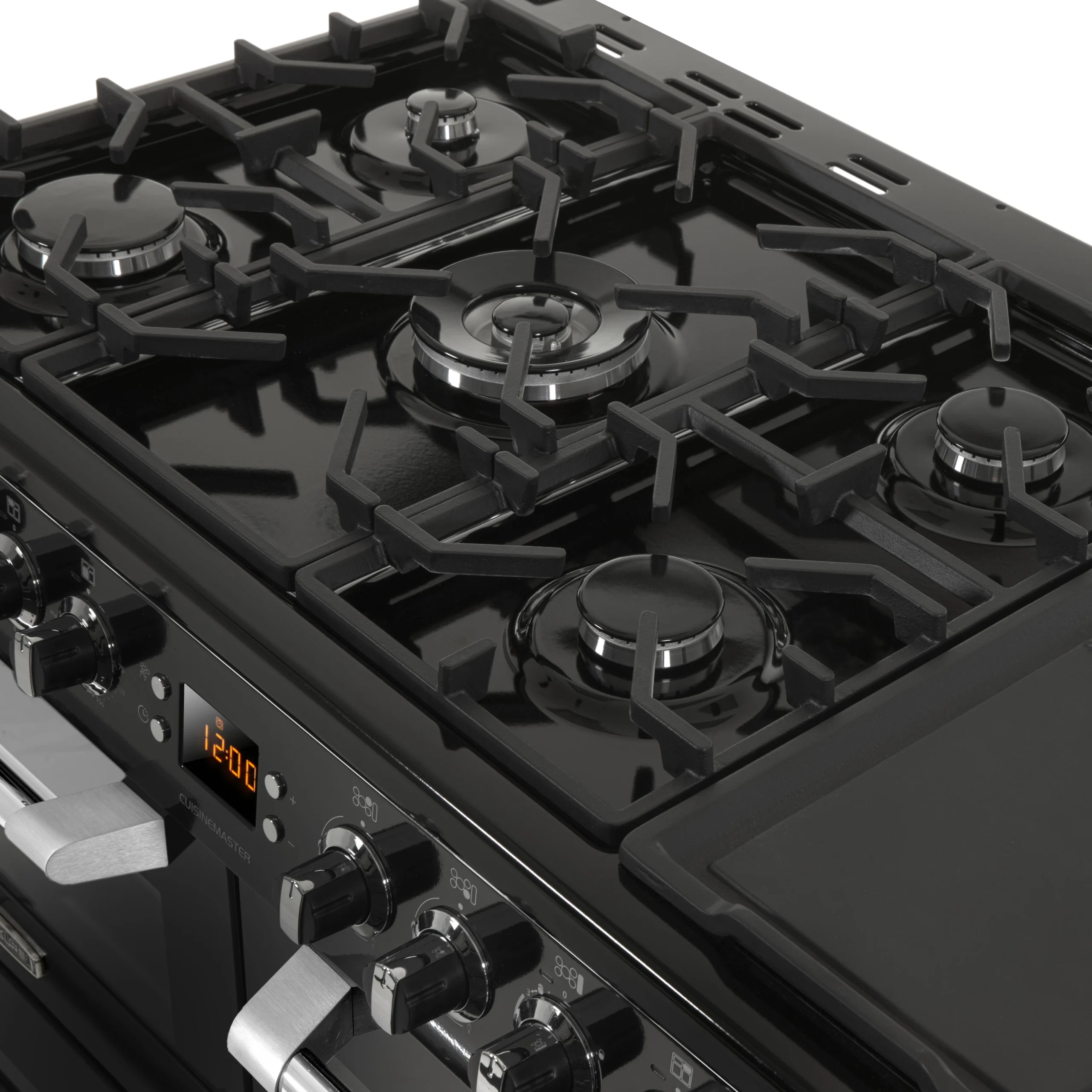 - Five burner gas hob with a dedicated hob top griddle