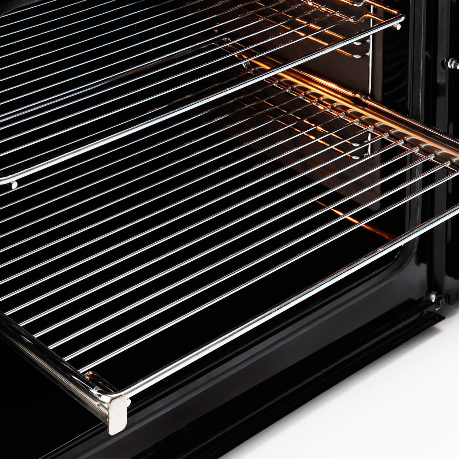 This 110cm Cuisinemaster dual fuel range cooker combines a range of great features with stylish design that will make a stunning style statement in any kitchen. With tonnes of oven space and 5 hob burners it is ideal for large families, keen bakers and those that love to entertain as it makes juggling a number of dishes a breeze. The easy grip knobs, internal lights and timer display gives you complete control and flexibility, this really is the perfect addition to any modern kitchen.