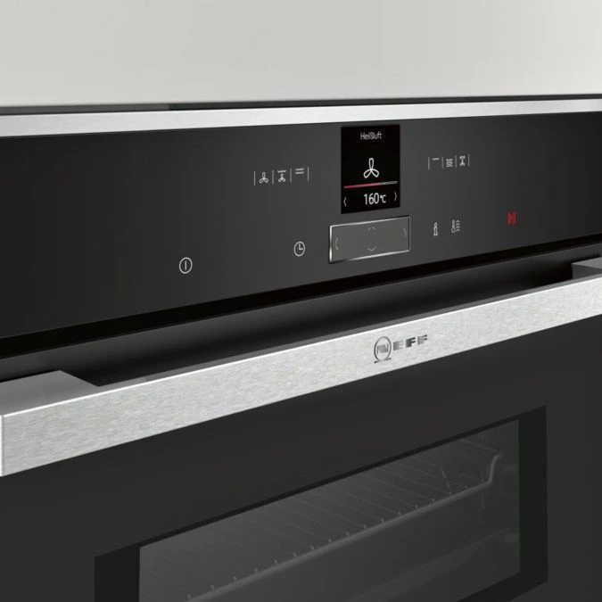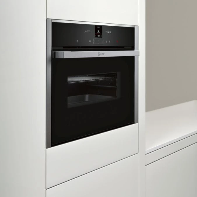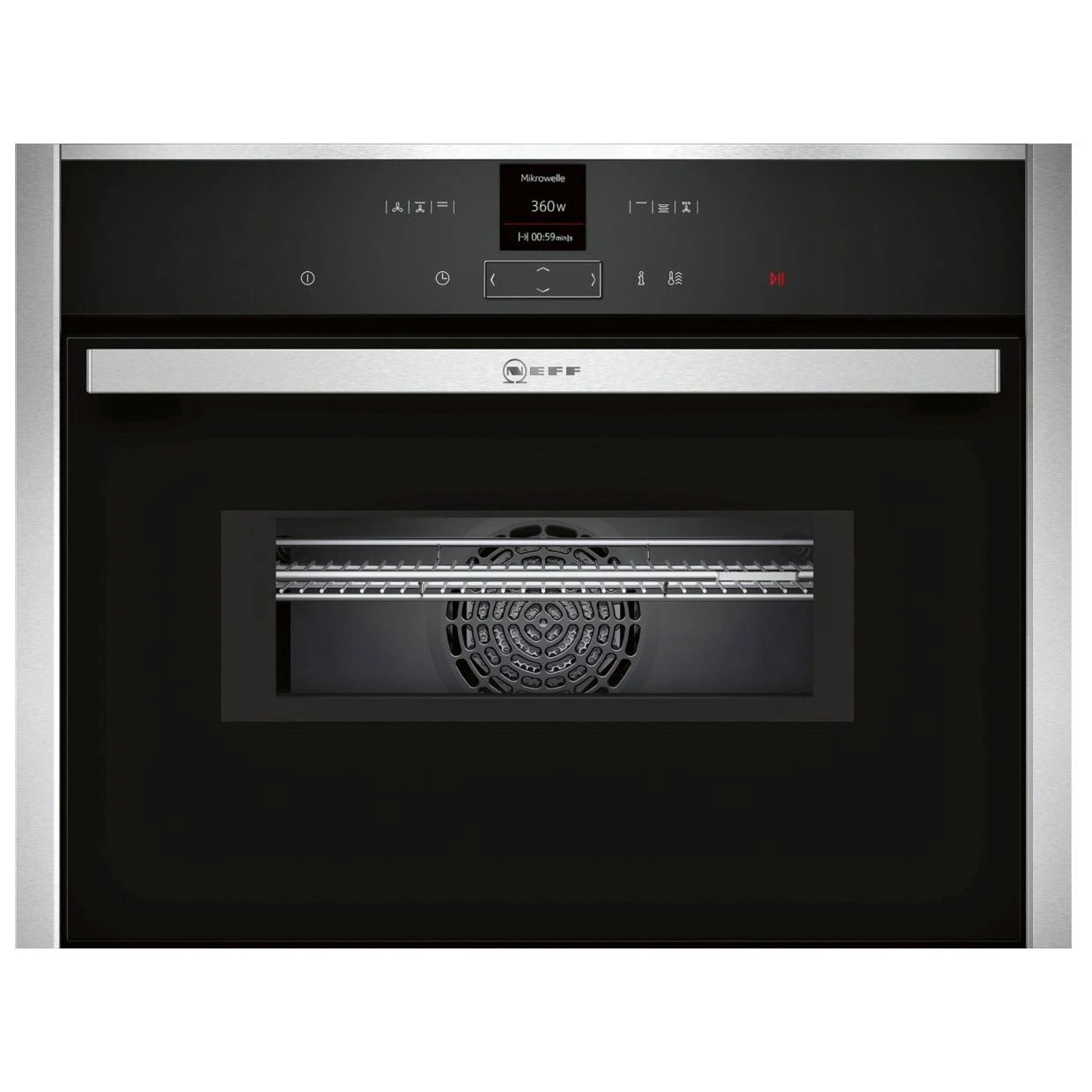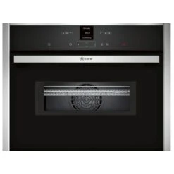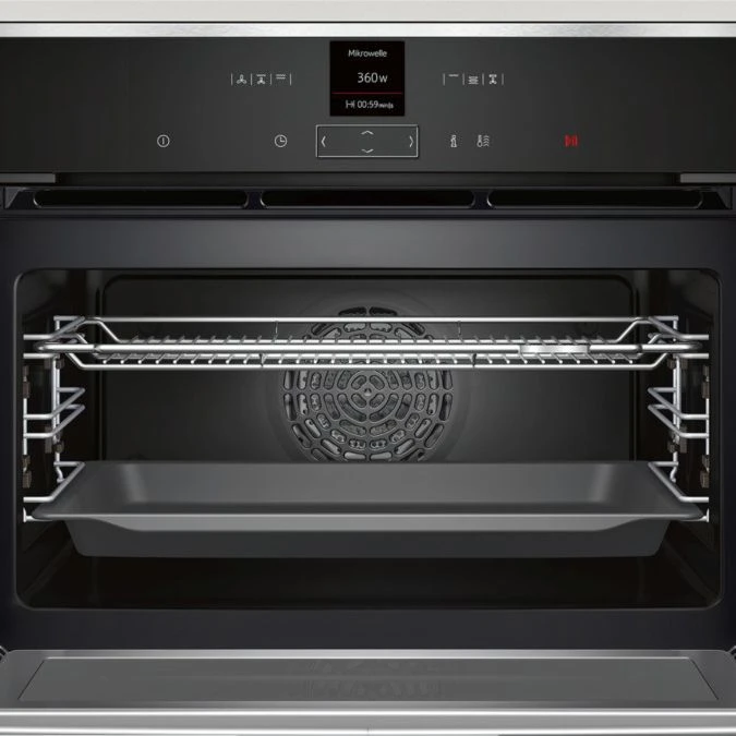 Enjoy cooking again with this stainless steel built-in electric compact oven with microwave from Neff. The six functions, standard accessories including 1x combination grid & 1x universal pan and sturdy design are easy to use. For additional safety, it comes with a safety lock, ideal for a busy home.
