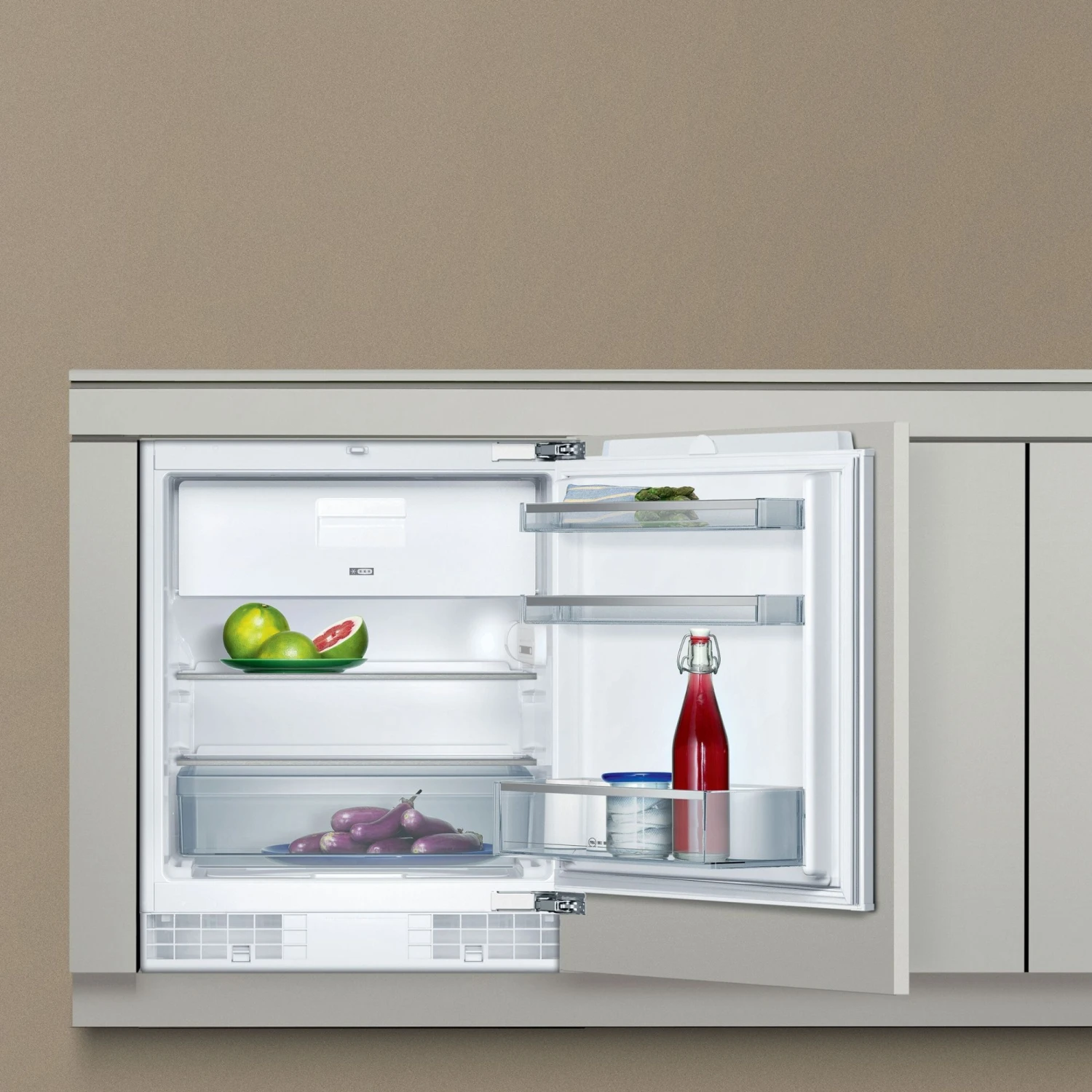 This integrated built under fridge fits behind a furniture door for a sleek finish. The 108 litres of space inside the fridge compartment and a handy 15 litres inside the ice box is ideal for ice cream and ice cubes in the summer.