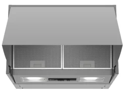 This integrated cooker hood, from Neff, with a fold out unit is discreetly hidden within the upper cabinets.