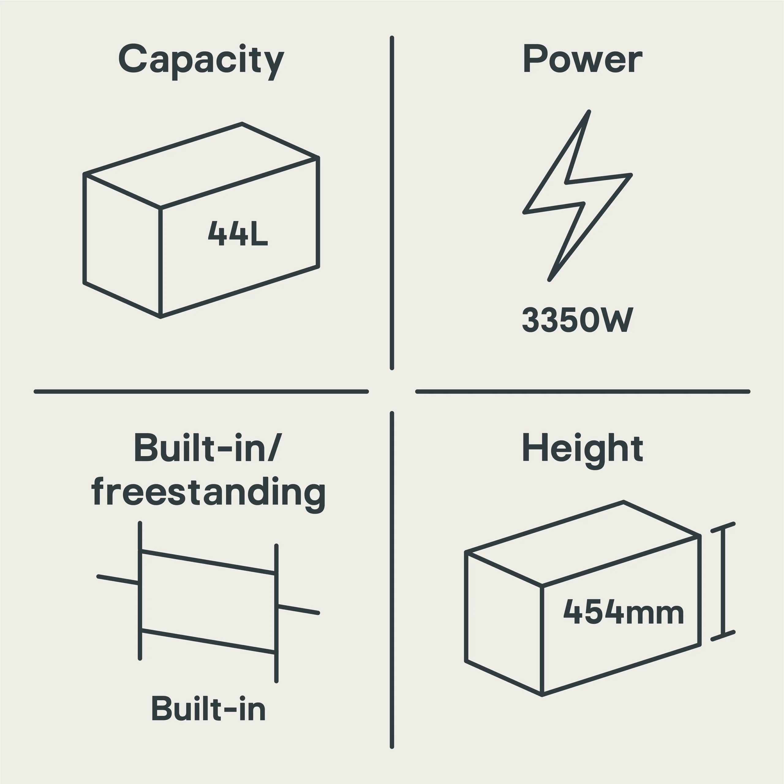 - Compact oven with 5 heating functions: microwave, hot-air, circo-roasting, full surface grill and keep warm