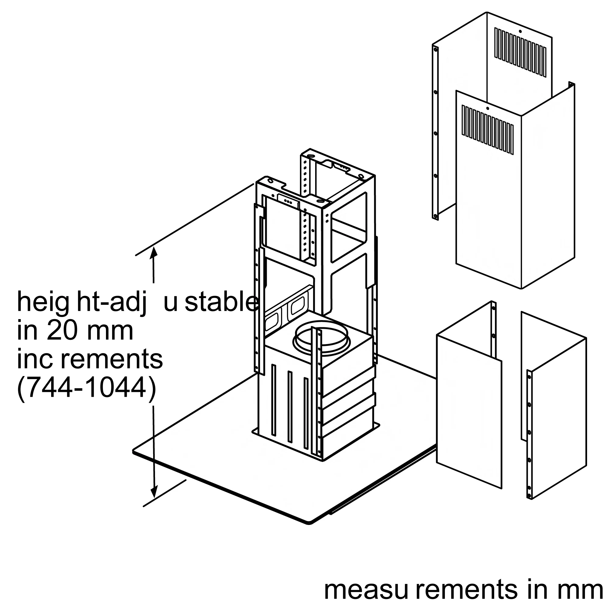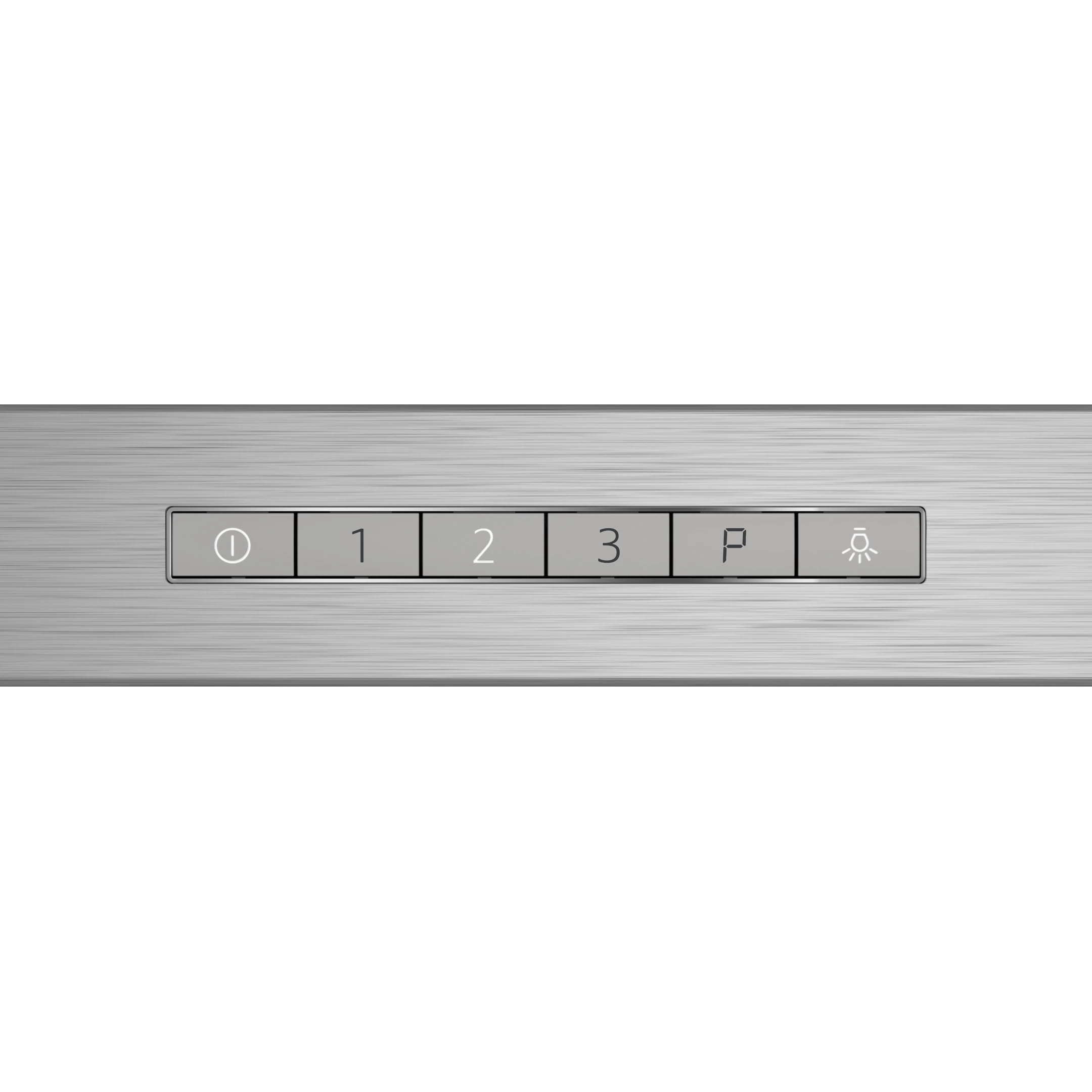 This flat glass canopy hood, from Neff, accentuates the box hood design with a mix of modern materials and straight lines.