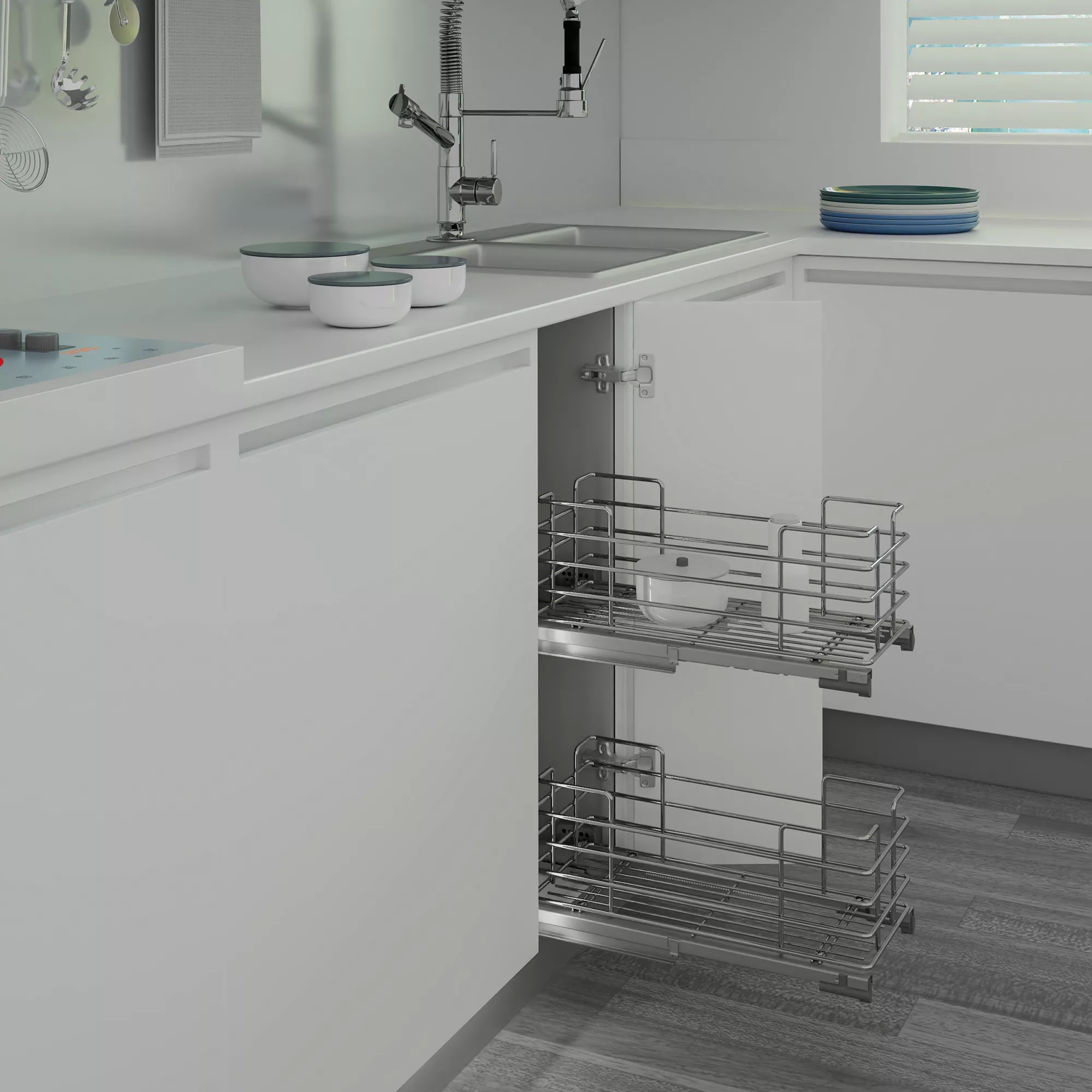This pull out basket is perfect for making the most of the space in your kitchen cabinet and can be retro-fitted so you don’t have to be replacing your kitchen to make use of this space saving product.