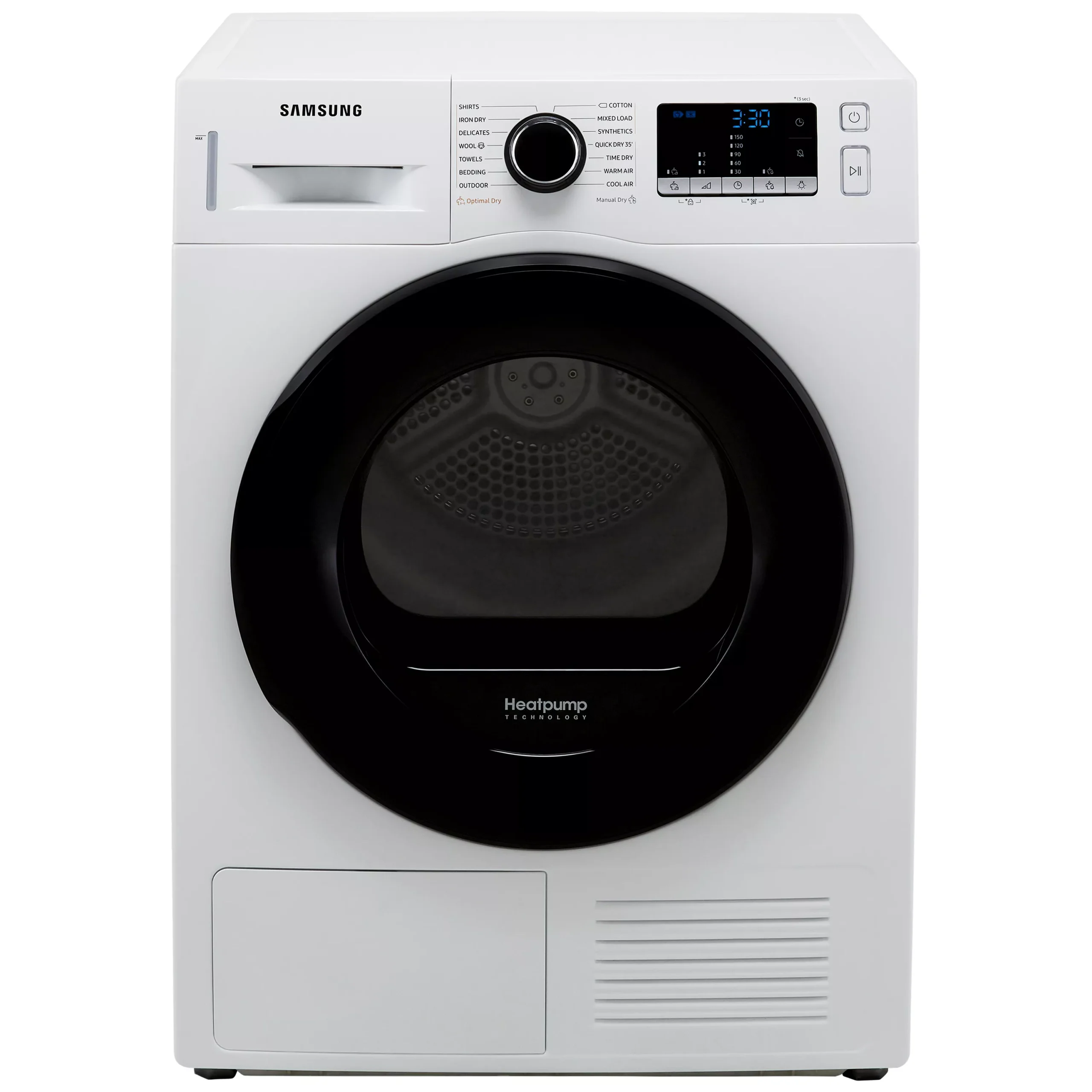 - Dries up to 9kg of clothes at once – great for getting through the laundry in a large household