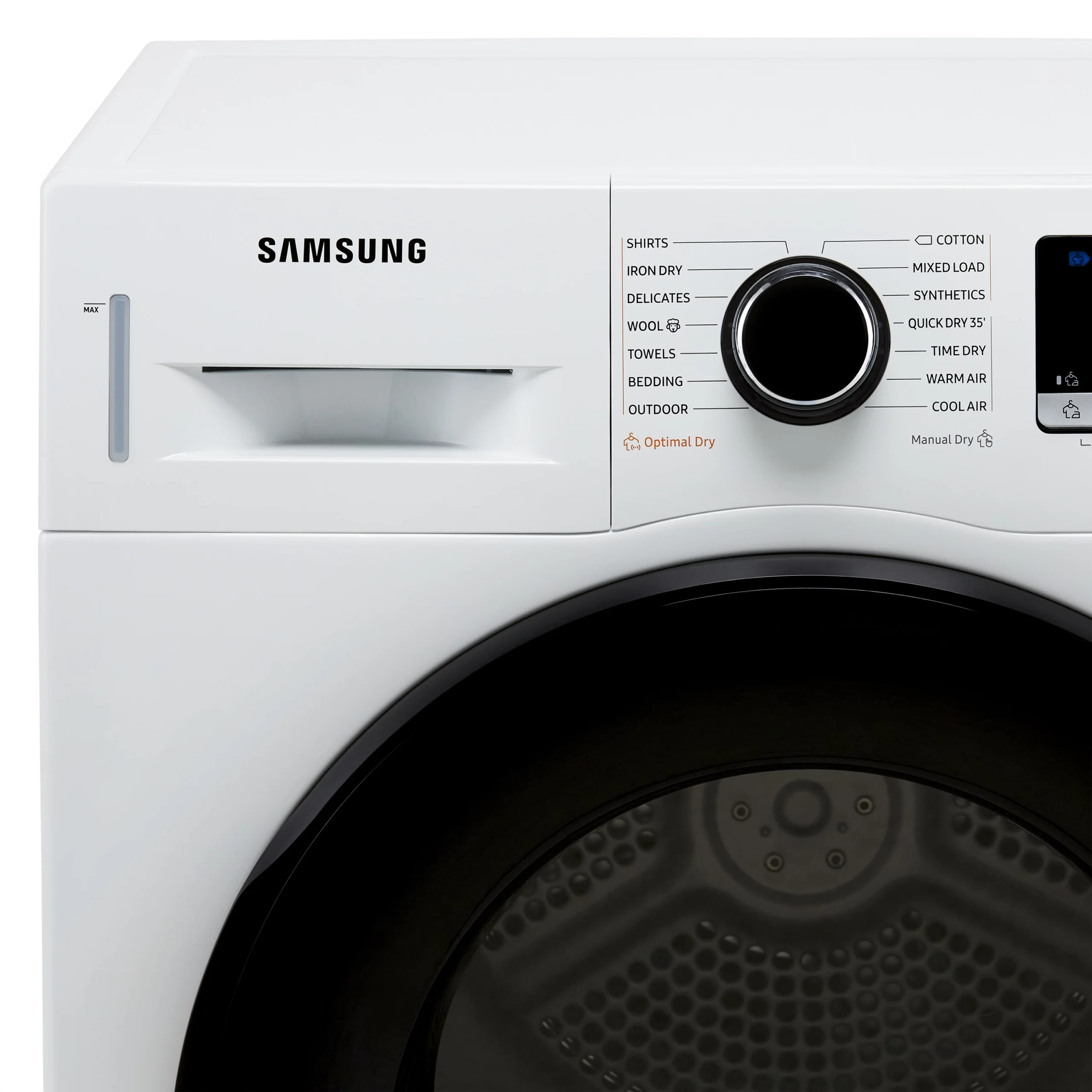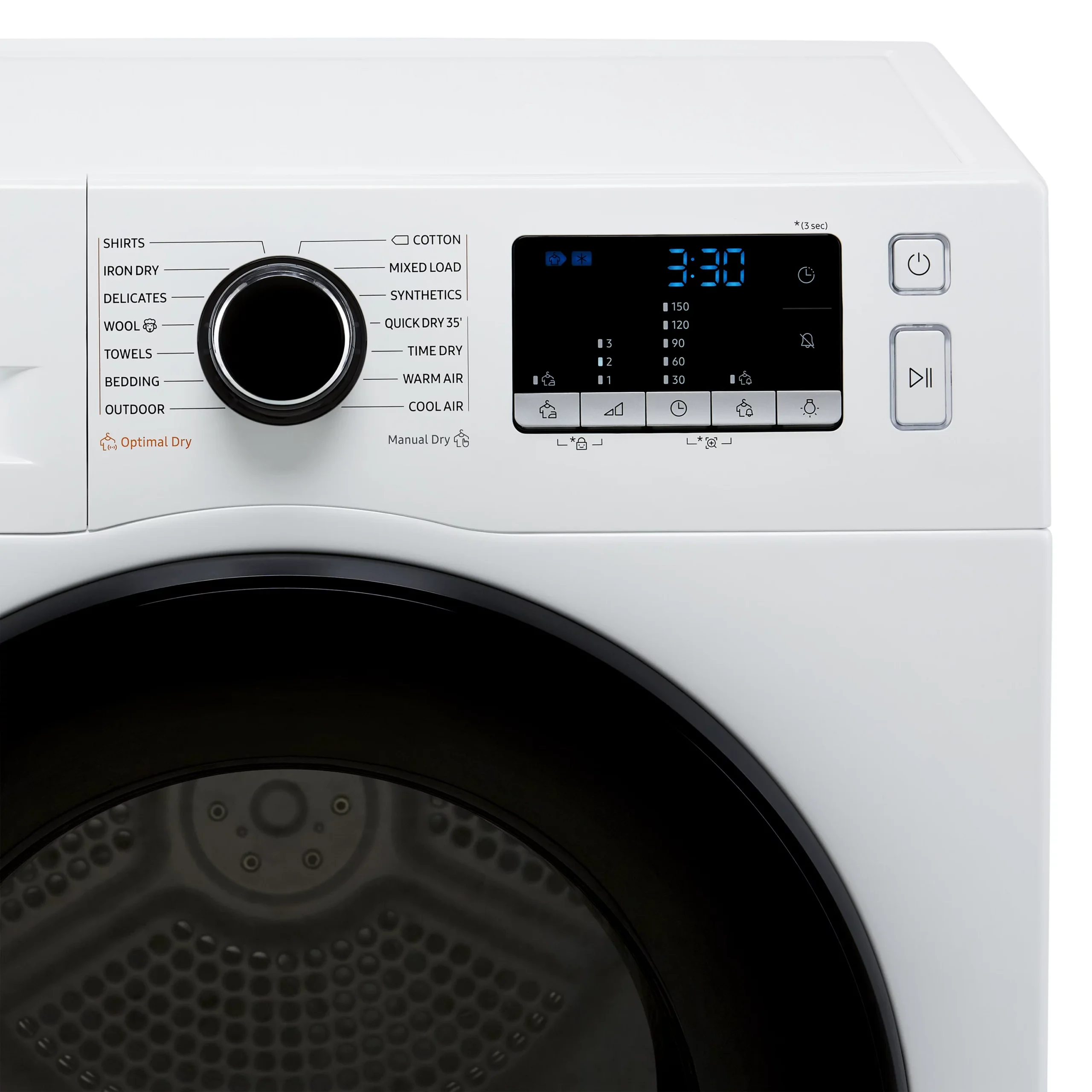- Optimal Dry™ sensors keep an eye on the moisture levels in your clothes to automatically adjust the cycle length – so it’ll only run for as long as it needs to.