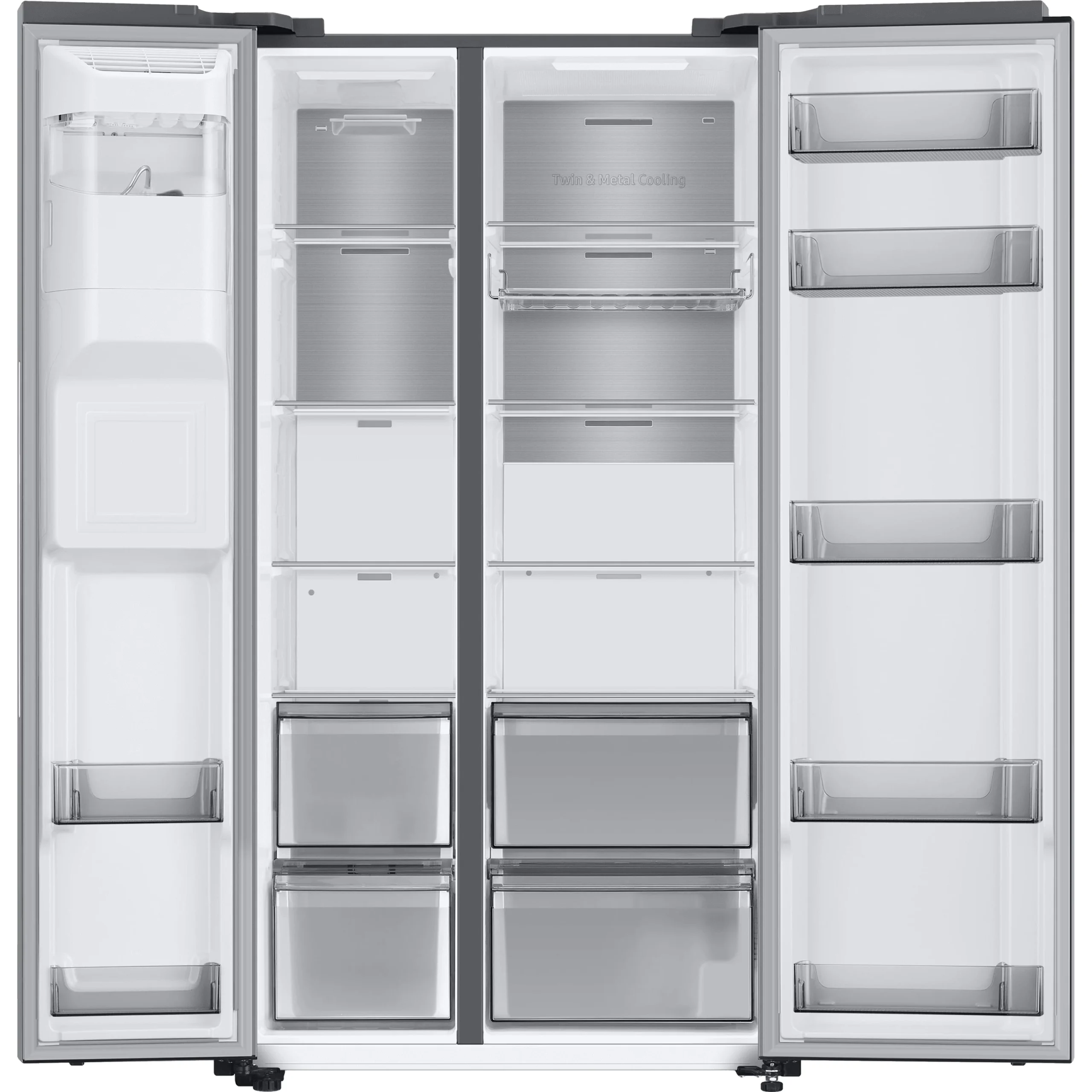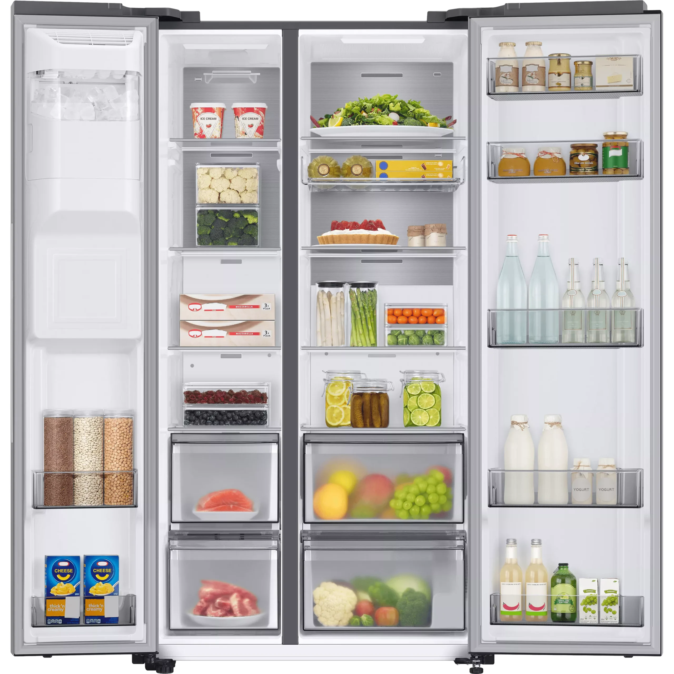 - Thanks to Samsung’s SpaceMax technology the fridge freezer has thinner walls, creating more space for groceries. It has a 635 litre capacity which can hold up to 35 bags of food shopping