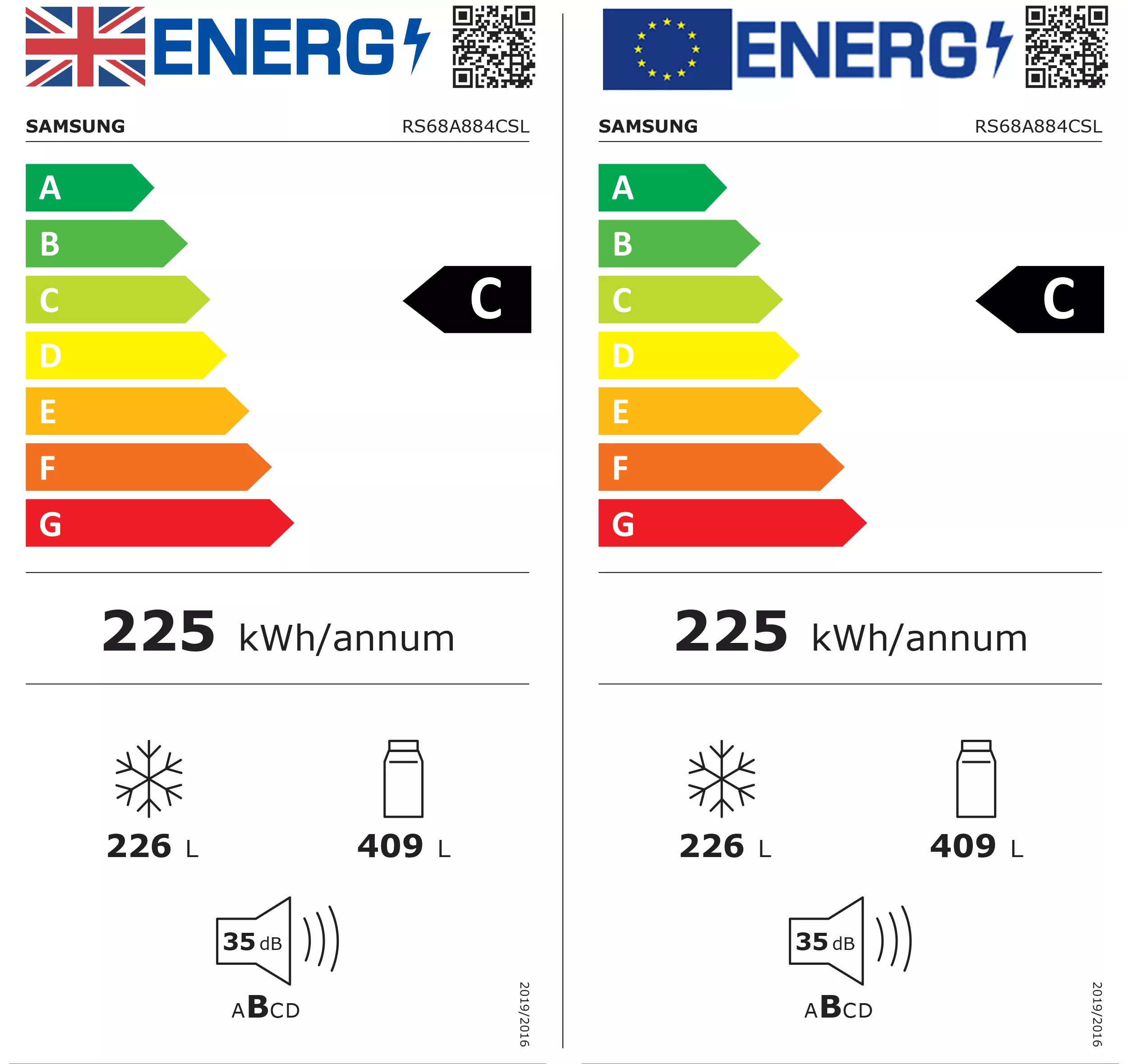 | Annual energy consumption | 225kWh |