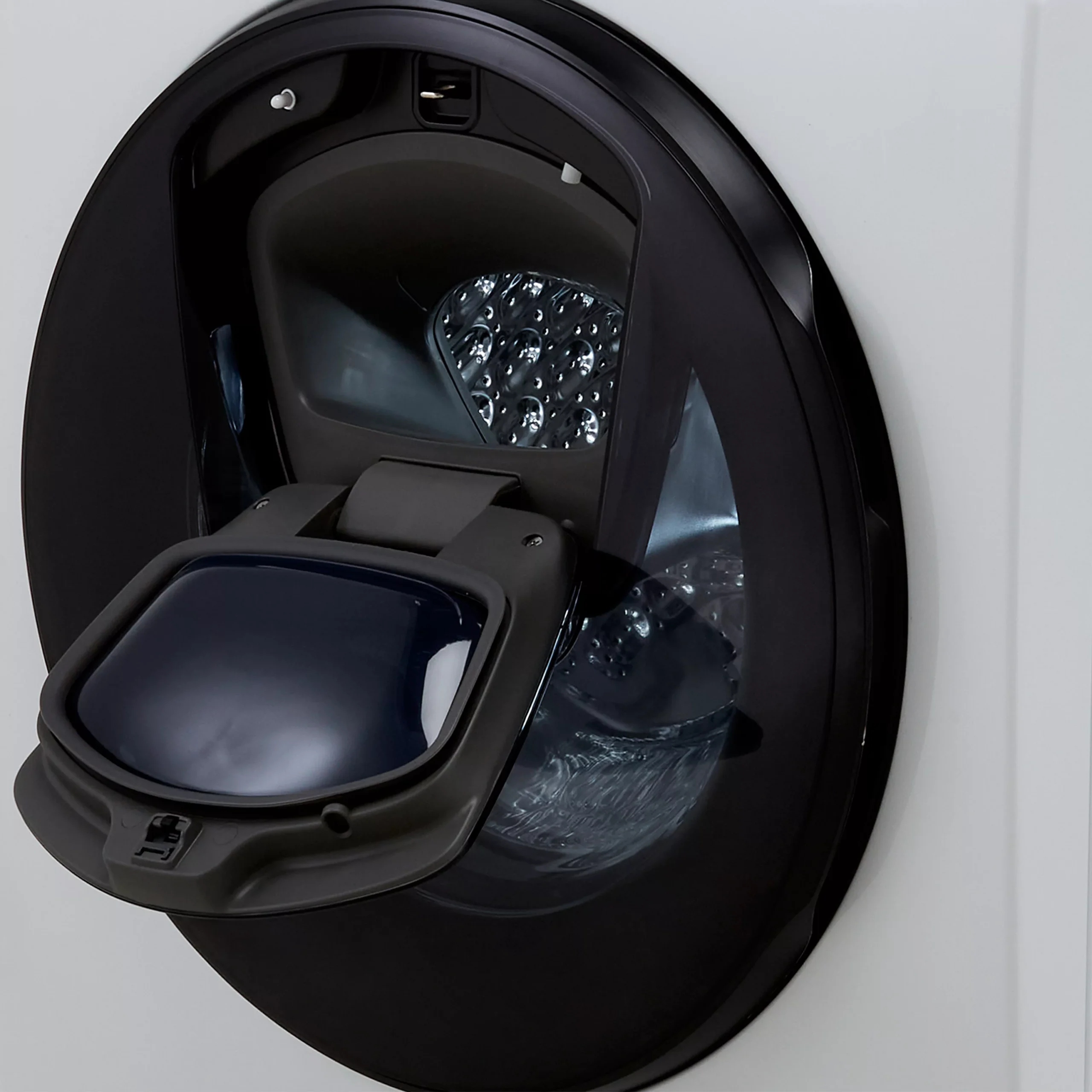 Samsung washer dryers are stylish and loaded with all the best tech that the market has to offer. If you’re the type of household to have a smart speaker in every room, this WD10T654DBH_WH model is right up your street, with an extra door that allows you to pop washing in mid-cycle that you forgot to add.