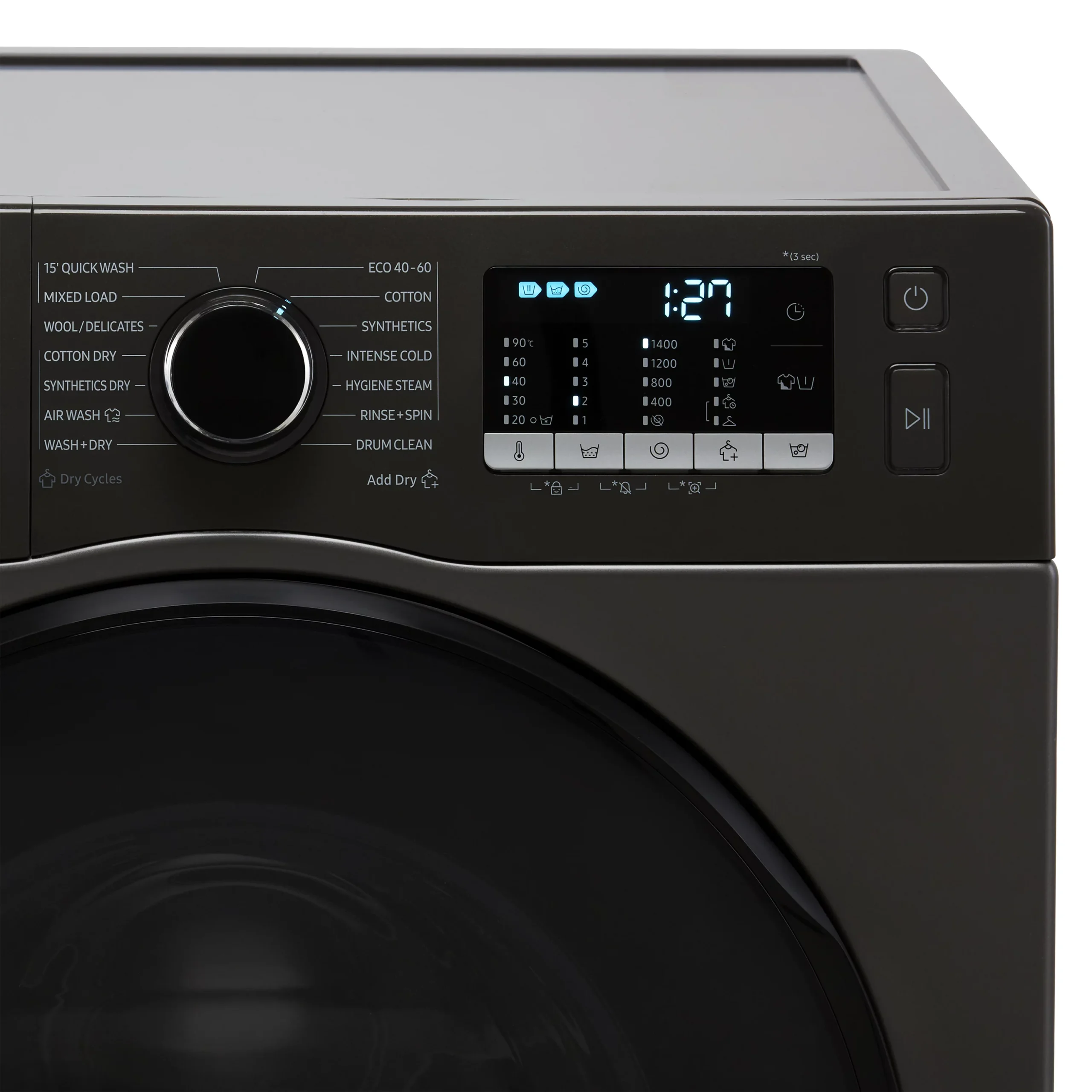 - Washes up to 9KG of clothes at once – great for getting through the laundry in a large household