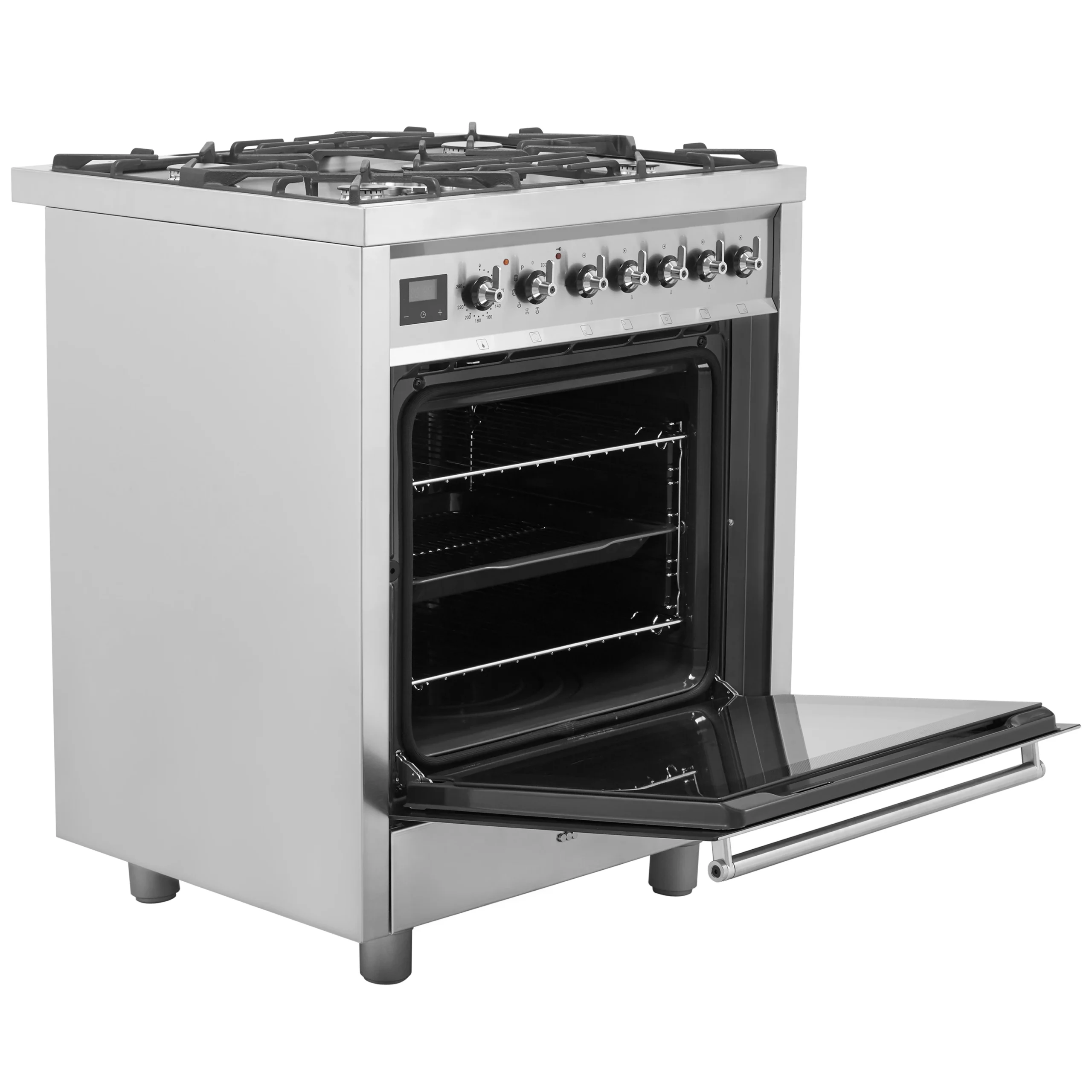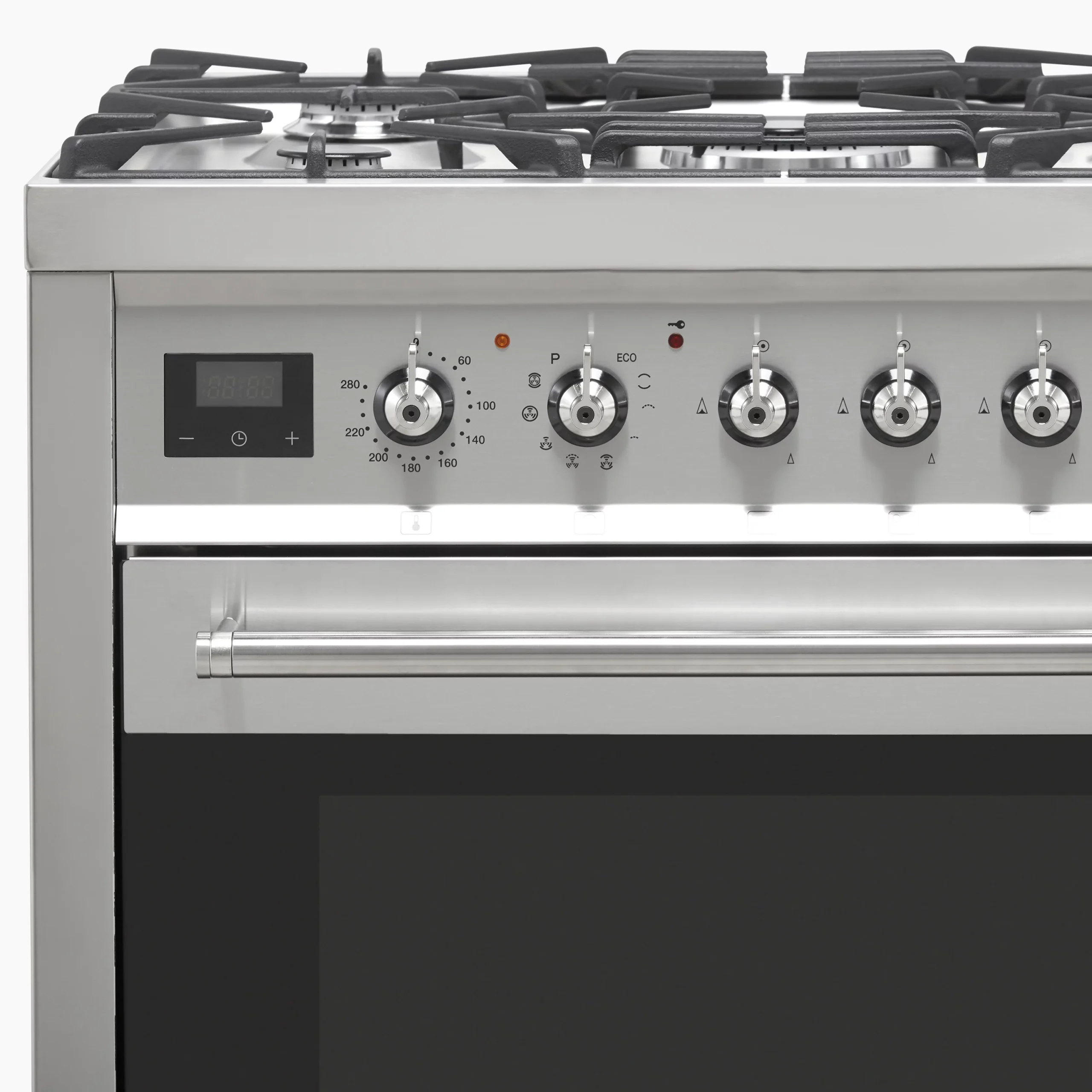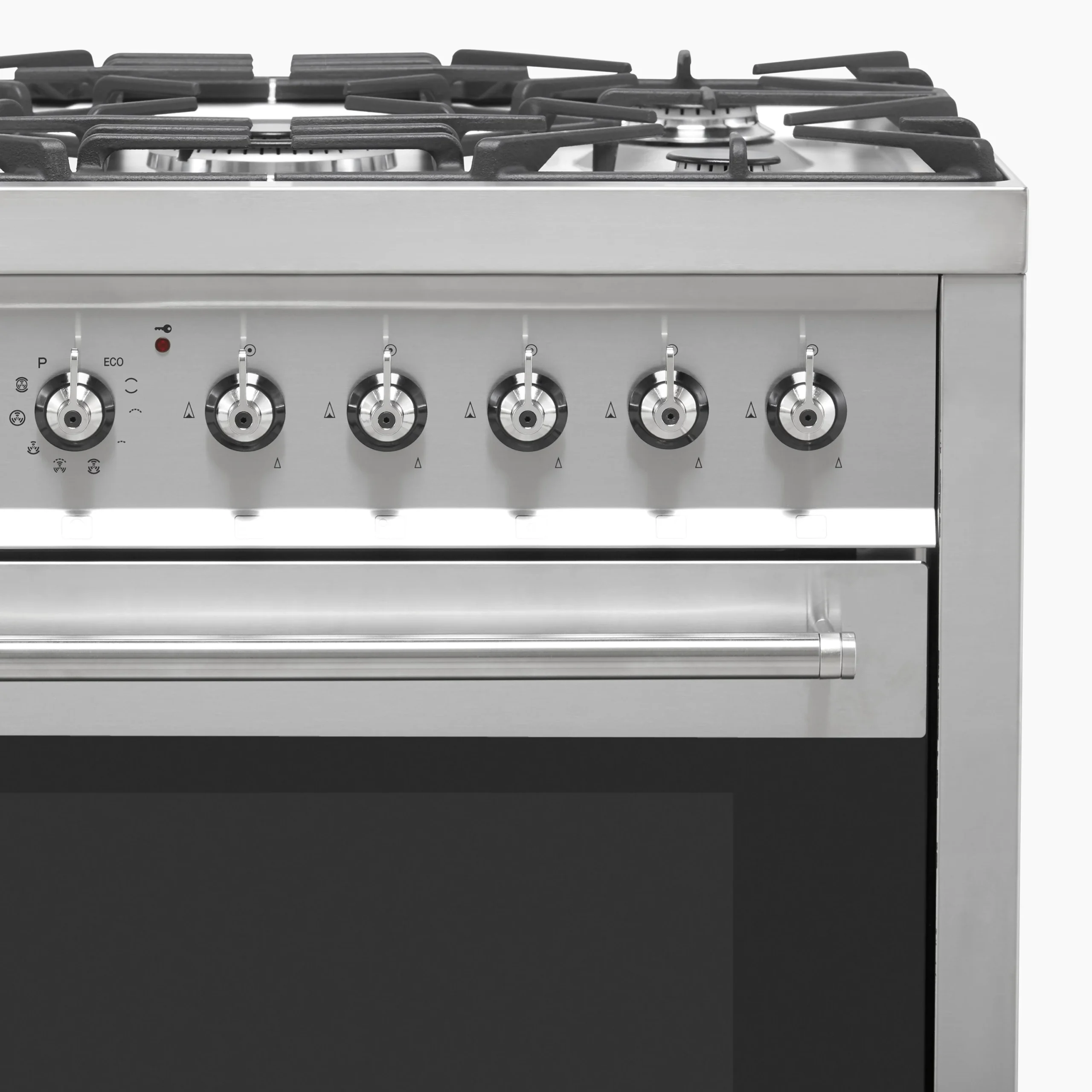 With its stainless steel finish, this Dual Fuel Cooker from Smeg will look fantastic in the heart of your home. It’s built for quality and designed to cook every dish you prepare to perfection – the electric oven is multifunctional, meaning there’s lots of different programmes to suit whatever you’re cooking, and the 5 zone gas hob heats up really quickly, so you can get to work boiling rice and frying chicken straight away. Not only that, but the C7GPX9_SS also has an A energy rating, meaning it’s energy-efficient and will cost less to run than older models.
