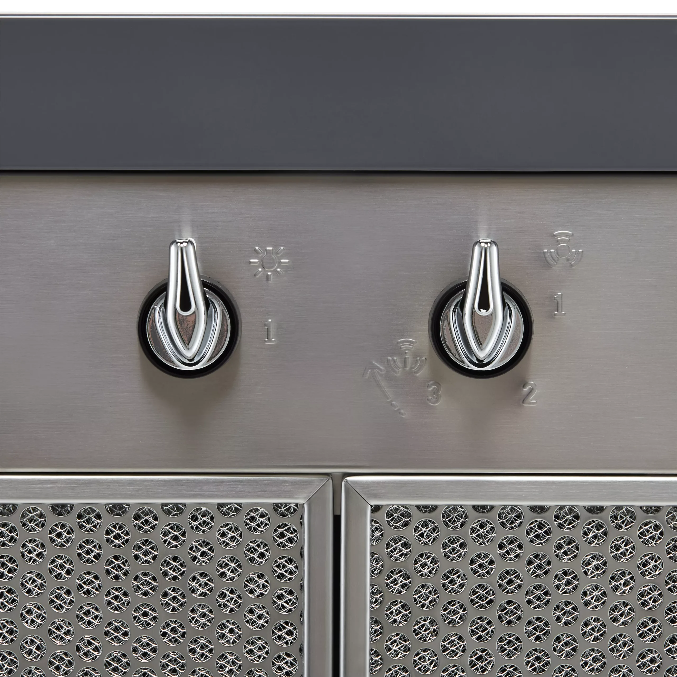 - Easy-to-use button controls make adjusting your hood’s settings effortless