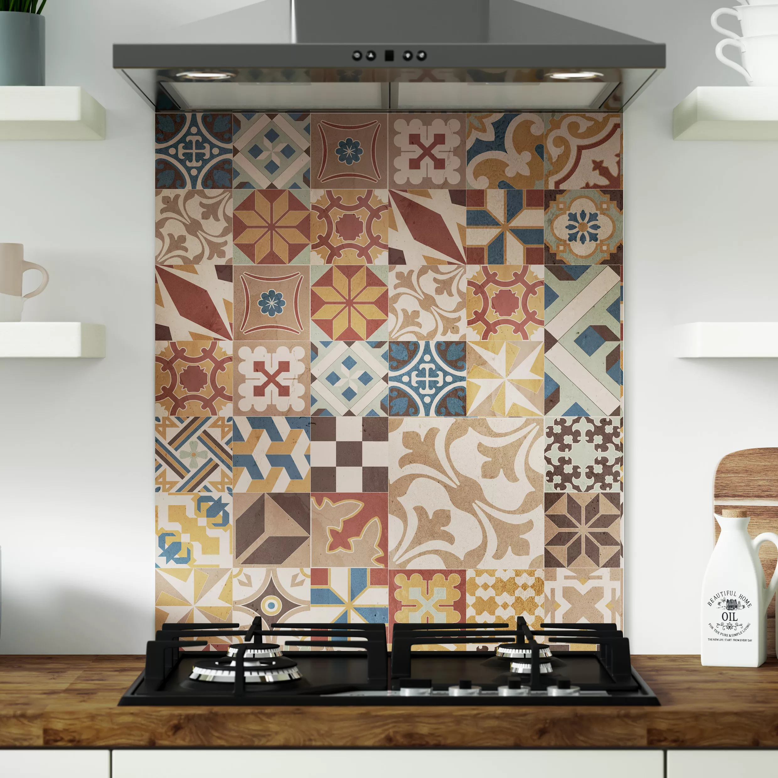 Bring your dream kitchen design to life with a beautiful brown moroccan mosaic tile splashback that fills the space behind your hob, without compromising safety. Your Alloy splashback is fire-safe behind any hob and waterproof behind any sink; with simple sizing and no need for an expensive glass cover or to break up your design with a stainless steel hob panel.